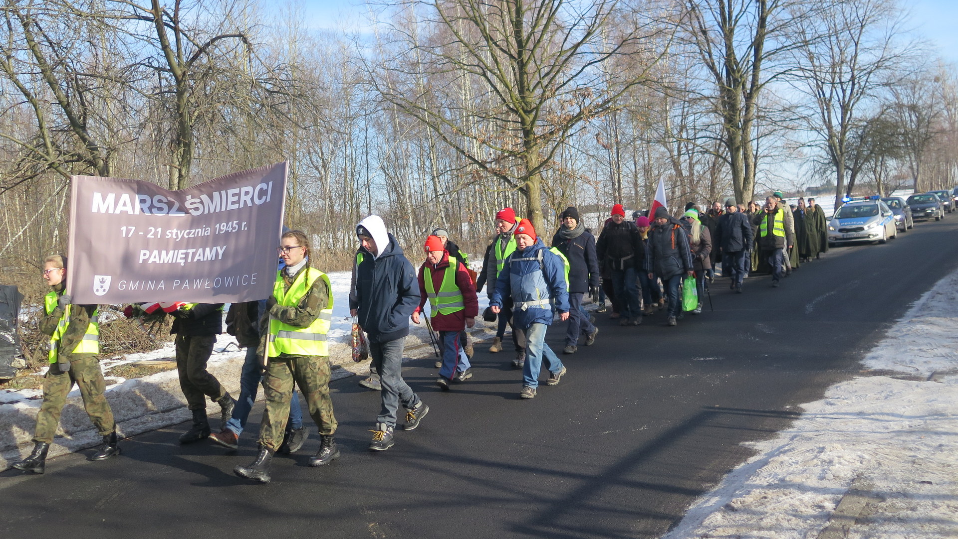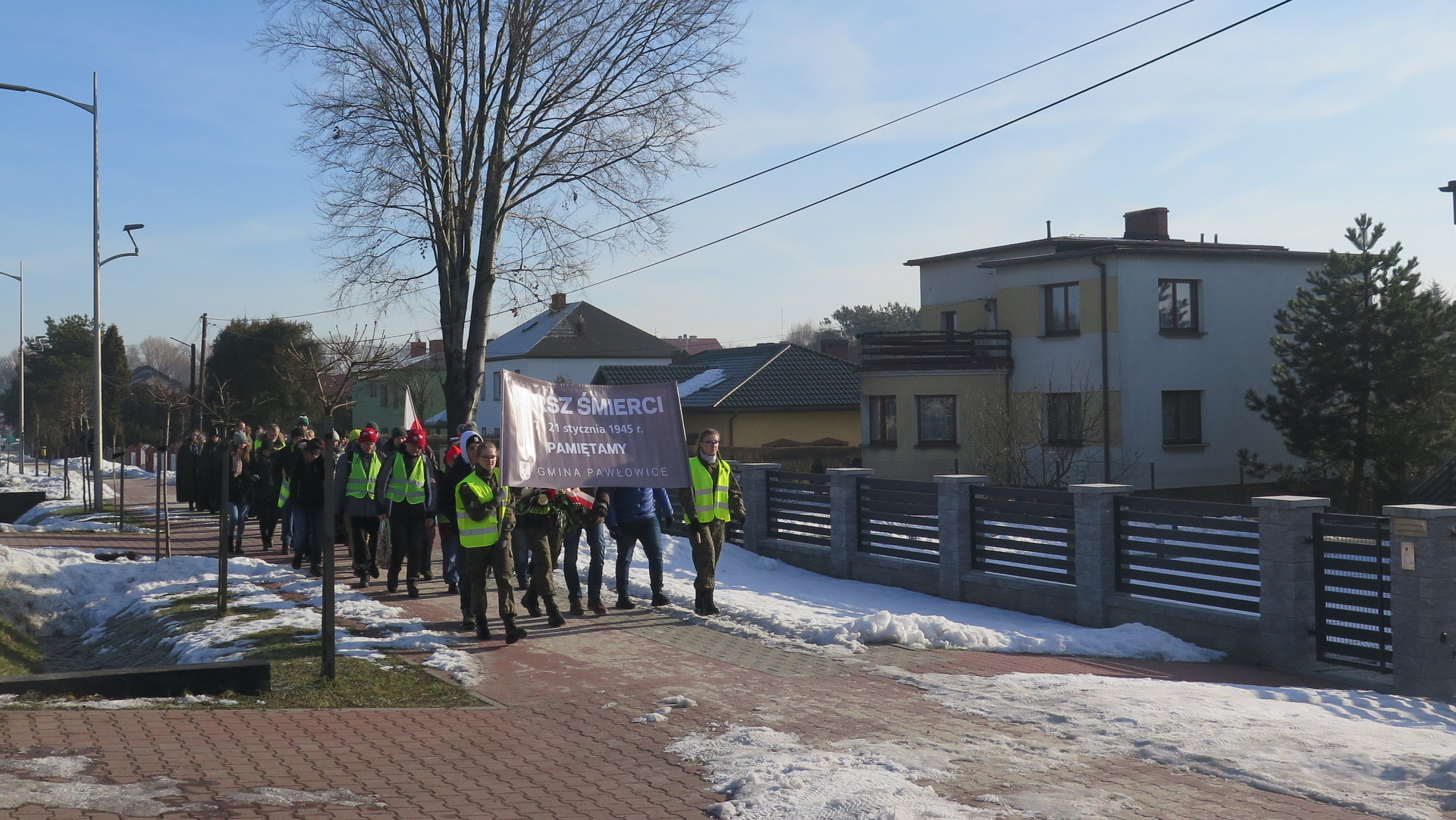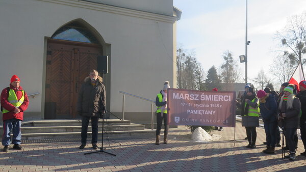 W sobotę, 19 stycznia, grupa członków oddziału PTTK Radlin wyruszyła ze Studzionki i dotarła do gminy Pawłowice. I jak co roku, pawłowiccy samorządowcy przyłączyli się do Marszu, aby wspólnie oddać hołd ofiarom. Wójt gminy Franciszek Dziendziel, zastępca wójta Joanna Śmieja wraz z przewodniczącym Rady Gminy Andrzejem Szawłem, członkiem zarządu starostwa pszczyńskiego Grzegorzem Nogłym, przedstawicielami radnych i sołtysów, harcerzami, uczniami, nauczycielami oraz kilkunastoosobową grupą uczestników rajdu złożyli kwiaty i zapalili znicze na pomniku ku pamięci 19 ofiar Marszu, znajdującym się przy kościele św. Jana Chrzciciela w Pawłowicach. Po chwili zadumy, zebrani ruszyli w dalszą trasę Marszu Śmierci ul. Wodzisławską w kierunku Jastrzębia-Zdroju. Kolejnym przystankiem był pomnik na Bziu Zameckim, upamiętniający wejście Wojsk Polskich na te tereny w 1922 r. W miejscu tym czekali już przedstawiciele władz miasta Jastrzębie-Zdrój - z wiceprezydentem Robertem Chojeckim. Wszyscy wspólnie oddali hołd pamięci tych tragicznych wydarzeń, które pozostaną ważną lekcją historii dla następnych pokoleń.
