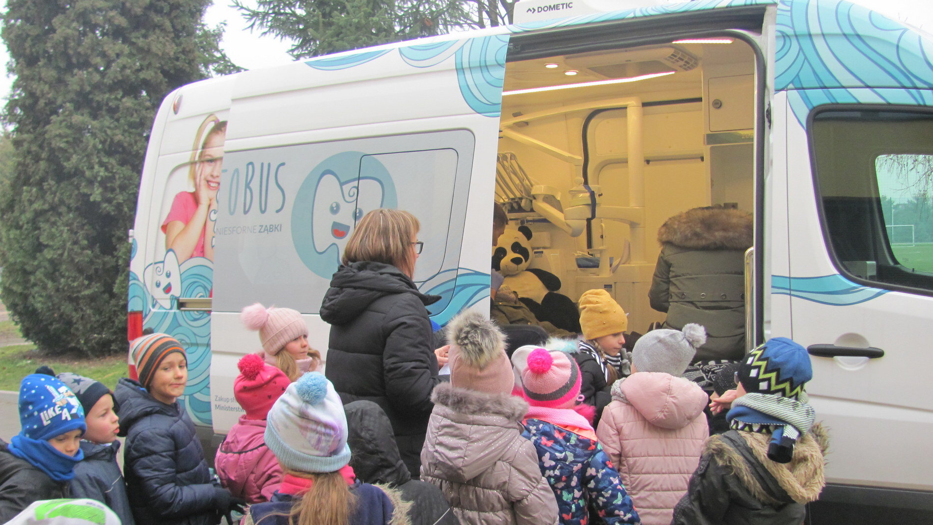 W piątek, 23 listopada, nowoczesny dentobus, czyli mobilny gabinet dentystyczny, zawitał do Zespołu Szkolno-Przedszkolnego w Pawłowicach. Dzieci z klas 1-3 oraz wszystkie przedszkolaki z Przedszkola w Modrzewiowym Ogrodzie mogły skorzystać z bezpłatnego badania stomatologicznego. Rodzice otrzymają zaświadczenia o stanie uzębienia swoich dzieci oraz o ewentualnej konieczności leczenia. O dobry nastrój najmłodszych dbała maskotka misia, która rozweselała dzieci i pozwalała im zapomnieć o wszelkich obawach związanych z badaniem.