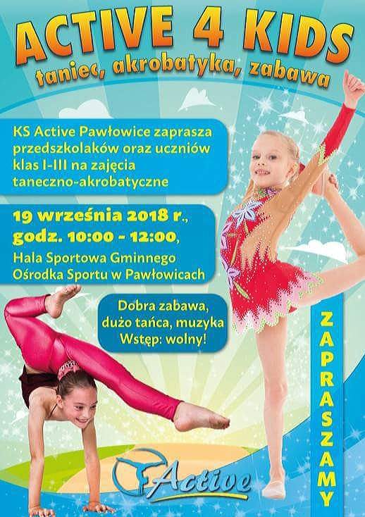 KS Active Pawłowice zaprasza przedszkolaków oraz uczniów klas I-III na zajęcia taneczno - akrobatyczne.