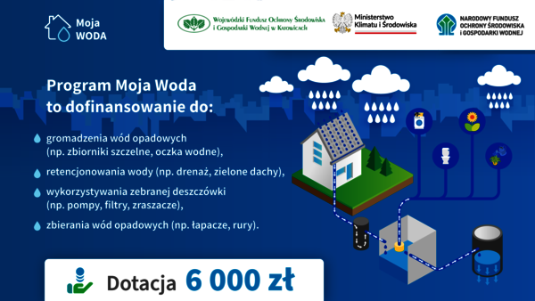 Ruszyła trzecia edycja Programu Narodowego Funduszu Ochrony Środowiska i Gospodarki Wodnej (NFOŚiGW) - „Moja Woda”, który ma pomóc w łagodzeniu skutków suszy i przeciwdziałaniu podtopieniom budynków w Polsce.Z rządowego programu mogą korzystać osoby fizyczne będące właścicielami lub współwłaścicielami nieruchomości, na której znajduje się budynek mieszkalny jednorodzinny, z uwzględnieniem domów nowobudowanych, oddanych do użytkowania przed złożeniem dokumentów do wypłaty. W ramach ww. naboru będą przyjmowane jedynie wnioski wypełnione i przesłane do Funduszu za pomocą portalu beneficjenta portal.wfosigw.katowice.pl jednocześnie należy wydrukować wypełniony formularz wniosku, podpisać i dostarczyć do WFOŚiGW w Katowicach wraz z dokumentami wymienionymi w spisie wymaganych załączników, w wersji papierowej lub ePUAP.Dotacja wynosi do 80% kosztów kwalifikowanych, ale nie więcej niż 6 tys. zł. Okres kwalifikowalności kosztów od 01.01.2023 r. do 30.06.2024 r. Minimalna wartość kwalifikowanego zakresu przedsięwzięcia objętego wsparciem wynosi 2 tys. zł.Do kosztów kwalifikowanych zalicza się koszty zakupu, dostawy, montażu, budowy, rozbudowy i uruchomienia instalacji:- do zebrania wód opadowych lub roztopowych z powierzchni nieprzepuszczalnych posesji, tj. z dachów, chodników, podjazdów (np. łapacze, wpusty, odwodnienie liniowe, przewody odprowadzające wody opadowe bez orynnowania);- do magazynowania wód opadowych w zbiornikach (np. szczelne zbiorniki podziemne i naziemne) o sumarycznej pojemności minimum 2 m3,- do retencjonowania wód opadowych, w tym roztopowych w gruncie (np. rozszczelnienie powierzchni nieprzepuszczalnych, studnie chłonne, drenaż, skrzynki rozsączające, zbiorniki otwarte),- do retencjonowania wód opadowych, w tym roztopowych na dachach – „zielone dachy” (warstwa drenażowa) bez kosztów nasadzeń;- do wykorzystania retencjonowanych wód opadowych lub roztopowych (np. pompy, filtry, przewody, zraszacze, sterowniki, centrale dystrybucji wody, inne instalacje umożliwiające zagospodarowanie wody z istniejącego/nowobudowanego w ramach inwestycji zbiornika).Realizacja przedsięwzięcia nie może być zakończona przed dniem złożenia wniosku o dofinansowanie do WFOŚiGW.Więcej informacji można uzyskać na stronie www.wfosigw.katowice.pl