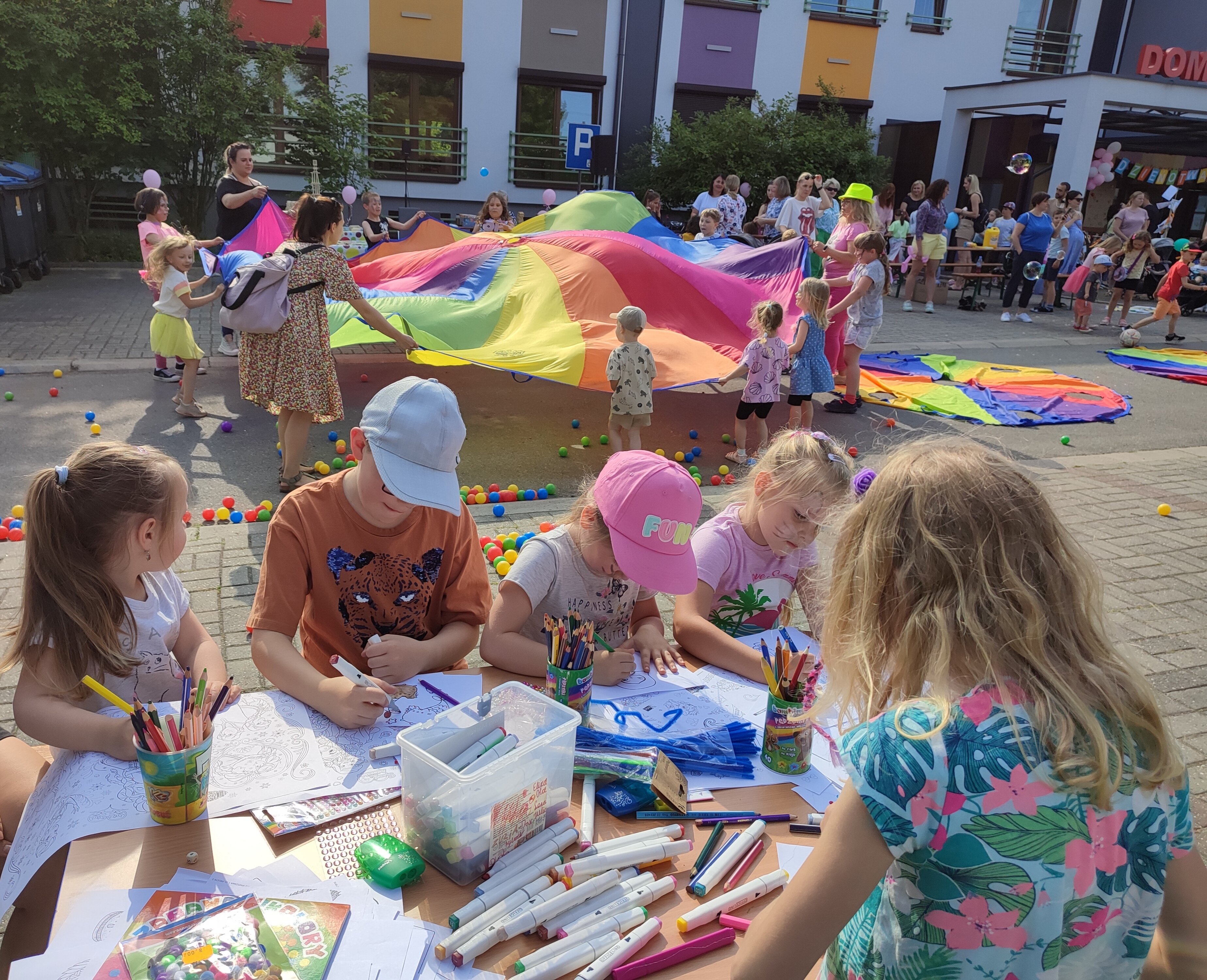 W popołudniową środę 31 maja 2023 r. w Świetlicy Różowe Okulary mieszczącej się w Osiedlowym Domu Kultury na otwartych zajęciach spotkały się dzieci wraz z rodzicami. Ponieważ pogoda tego dnia dopisała, część aktywności odbyła się na świeżym powietrzu.Dzieci oraz młodzież miały okazję skorzystać z długopisów 3D, programować roboty, uczestniczyć w zajęciach z dogoterapii, puszczać gigantyczne bańki, przeciągać linę, malować twarze czy lepić slimy.Rodzice natomiast mogli skorzystać z konsultacji z psychologiem oraz logopedą.Przypominamy, że Świetlica Różowe Okulary mieści się w Pawłowicach przy ulicy Wojska Polskiego 11.