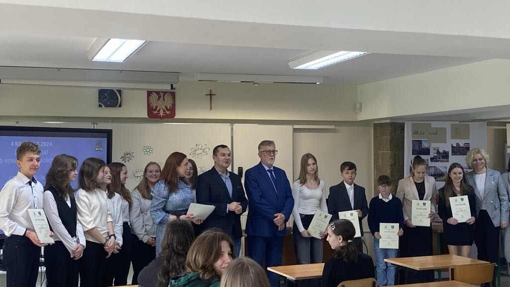 Wójt Gminy Pawłowice Franciszek Dziendziel wręczył nagrody zwycięzcom oraz podziękował nauczycielom za zaangażowanie i trud włożony w organizację i przygotowanie młodzieży do konkursu.