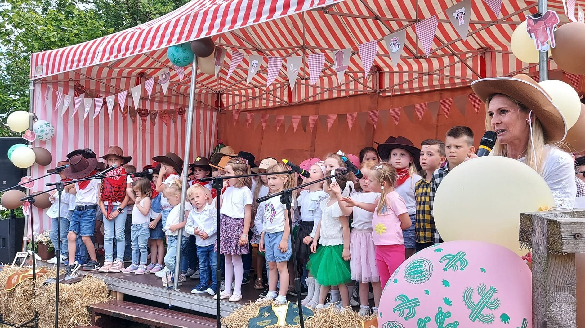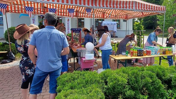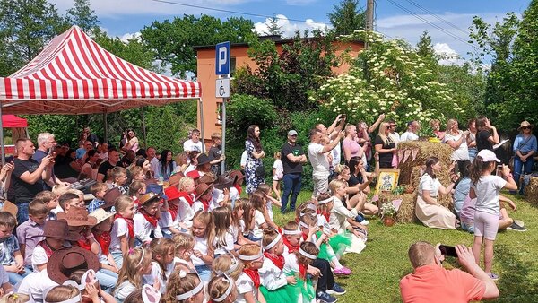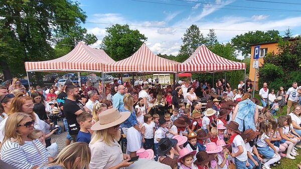 Z tej okazji odbył się festyn w stylu dzikiego zachodu w przedszkolnym ogrodzie. Wydarzenie rozpoczęło się od występów artystycznych przygotowanych przez najmłodszych. Cały dzień wypełniały niespodzianki i atrakcje. Dzieci brały udział w konkurencjach sprawnościowych oraz animacjach prowadzonych przez Mega Frajdę. Atrakcją były również trzy sympatyczne alpaki, którym można było się przyjrzeć z bliska, a nawet pogłaskać i nakarmić. Dla wielu wrażenie z pewnością zrobiły prawdziwe amerykańskie policyjne samochody.