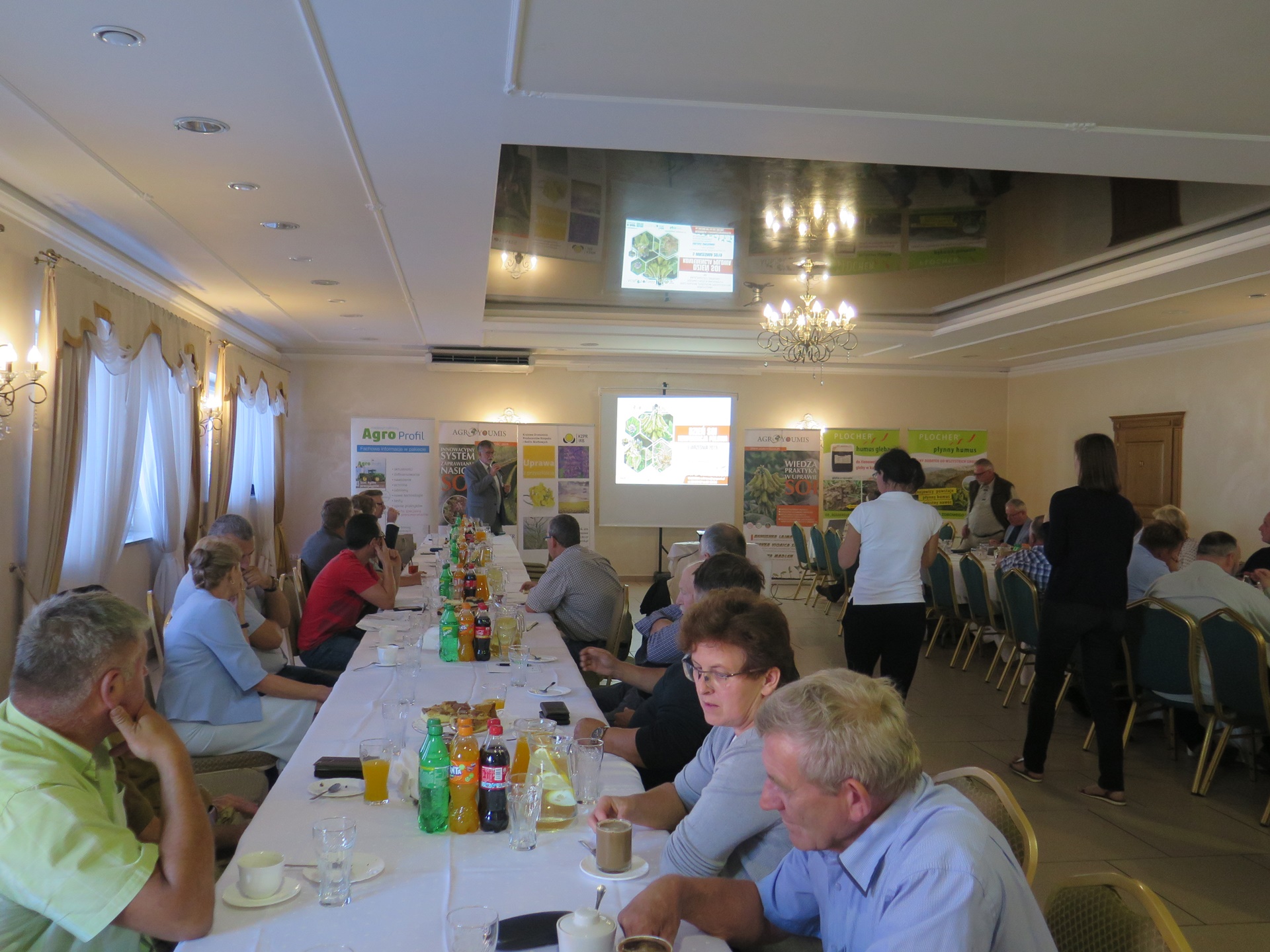 W czwartek, 5 września, rolnicy z gminy Pawłowice i okolic mieli okazję uczestniczyć w konferencji polowej dotyczącej uprawy soi. Krajowe Zrzeszenie Producentów Rzepaku i Roślin Białkowych (KZPRiRB) wraz z firmą Agroyoumis zorganizowali konferencję, która odbyła się w Domu Przyjęć Penkala w Pielgrzymowicach. Uczestnicy mogli dowiedzieć się o zaletach, zastosowaniu oraz o warunkach uprawy tej wysokobiałkowej rośliny. Uprawa soi z roku na rok staje się coraz popularniejsza, szczególnie w województwie podkarpackim i małopolskim, szacuje się, że obecnie uprawiana jest na 53 tys. hektarów. Prelegenci podkreślali wartość soi jako alternatywnego materiału paszowego, który jest wolny od organizmów modyfikowanych genetycznie i posiada dużą ilość białka, aminokwasów oraz włókna.