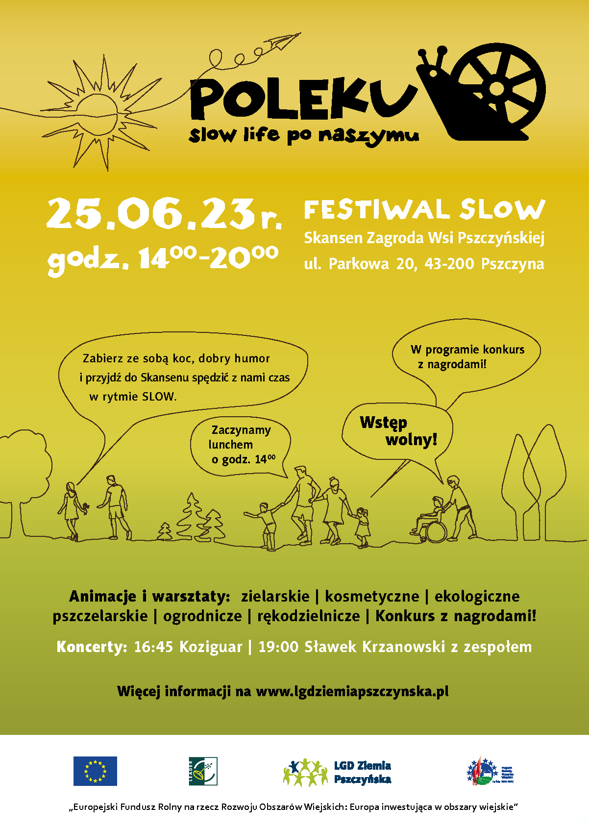 Podczas festiwalu mieszkańcy obszaru działania LGD "Ziemia Pszczyńska" mogą wziąć udział w wydarzeniu Lunch w Skansenie podczas V Edycji Festiwalu POLEKU slow life po naszymu!