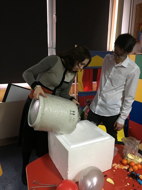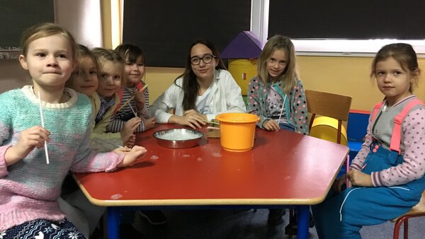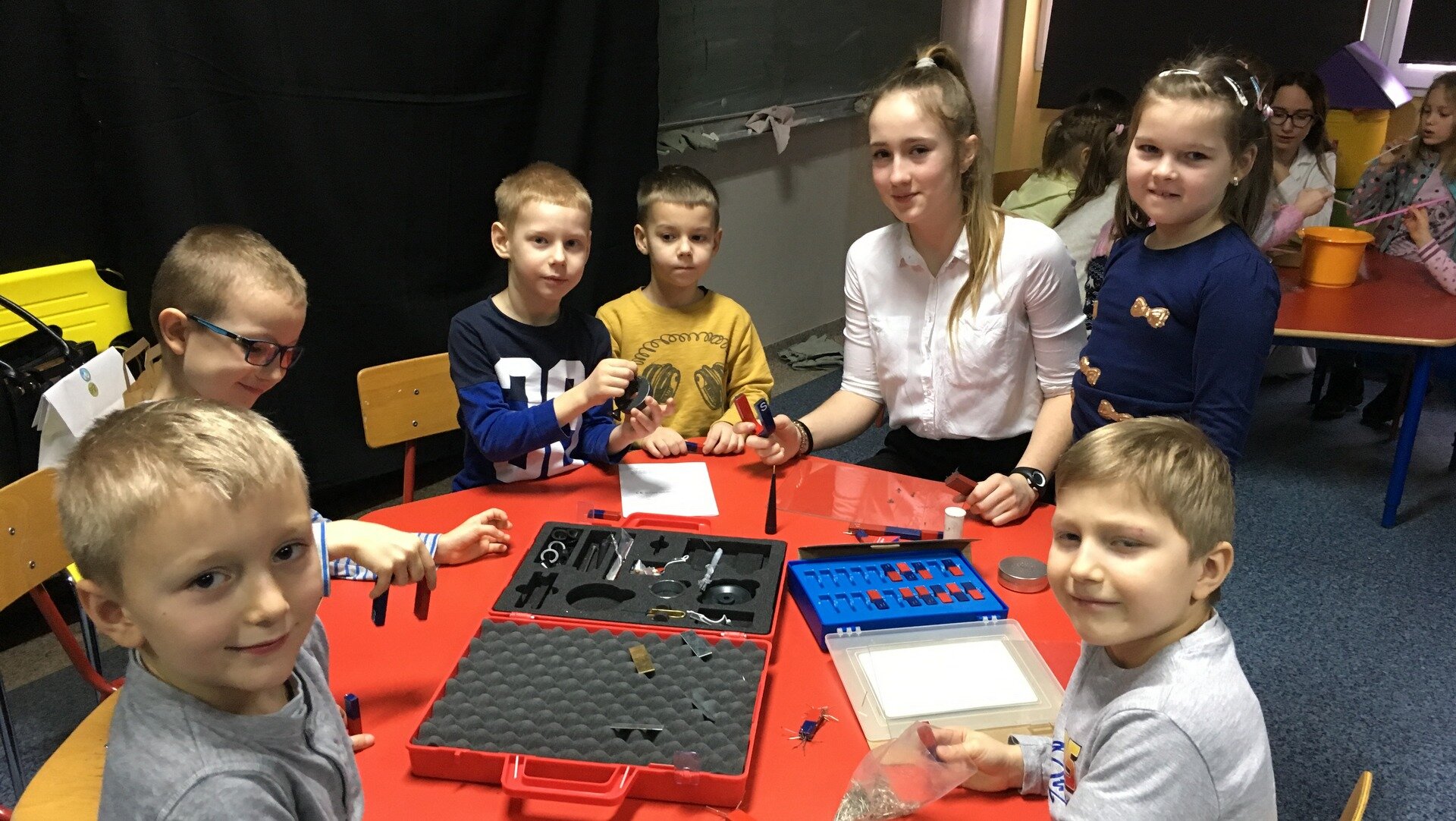 Uczniowie najstarszych klas Szkoły Podstawowej nr 2 i Gimnazjum zaprezentowali wychowankom "Modrzewiowego Ogrodu" Interdyscyplinarny Projekt Edukacyjny "Przedszkolacy eksperymentują zjawiska fizyczne". Gimnazjaliści przedstawili młodszym kolegom wiersze z książki "Piorun na smyczy" autorstwa Agaty Orłoś i Jerzego Wolnego. We własnej interpretacji ekranowej (filmy animowane) i scenicznej (etiudy teatralne) przedstawili utwory poetyckie opisujące zjawiska przyrodnicze i zagadnienia fizyczne. Ósmoklasiści ilustrowali każdy tekst pokazem doświadczenia fizycznego. Później najmłodsi wzięli udział w przygotowanych przez ósmoklasistów warsztatach, własnoręcznie wykonując doświadczenia z magnetyzmu, optyki, elektrostatyki, prądu elektrycznego. Największe wrażenia na sześciolatkach robiło przeprowadzane doświadczenie z użyciem ciekłego azotu.