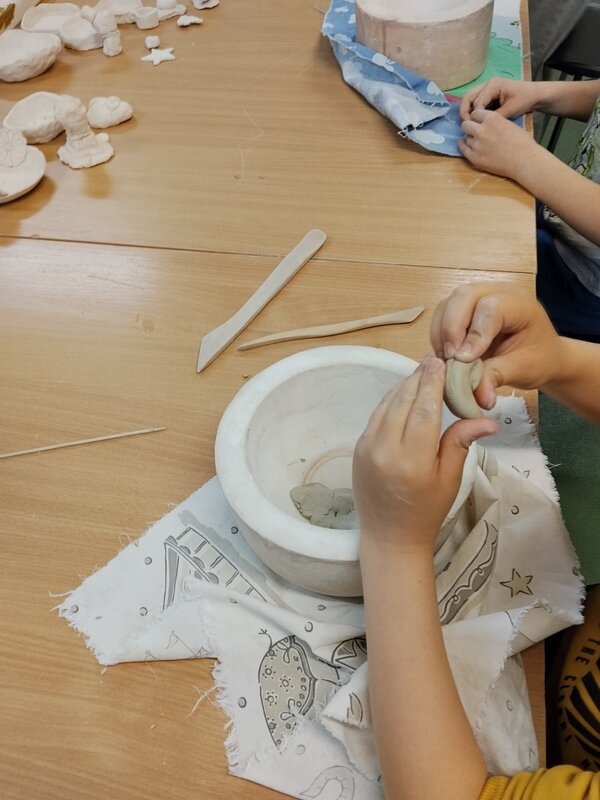Tworzenie ceramicznych misek ażurowych to wspaniała technika, która pozwala zamienić ciężką glinę w lekkie, koronkowe dzieło sztuki. Podczas tych zajęć dzieci nauczyły się precyzji oraz jak "oszukać" naturę gliny tworząc z niej lekkie formy.