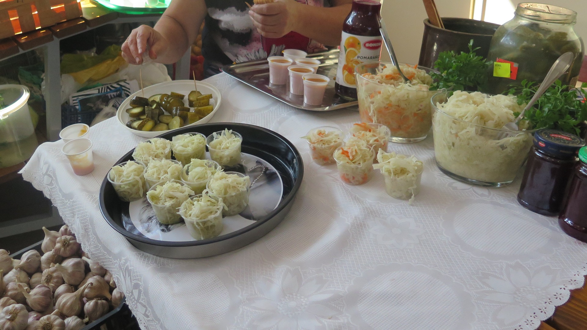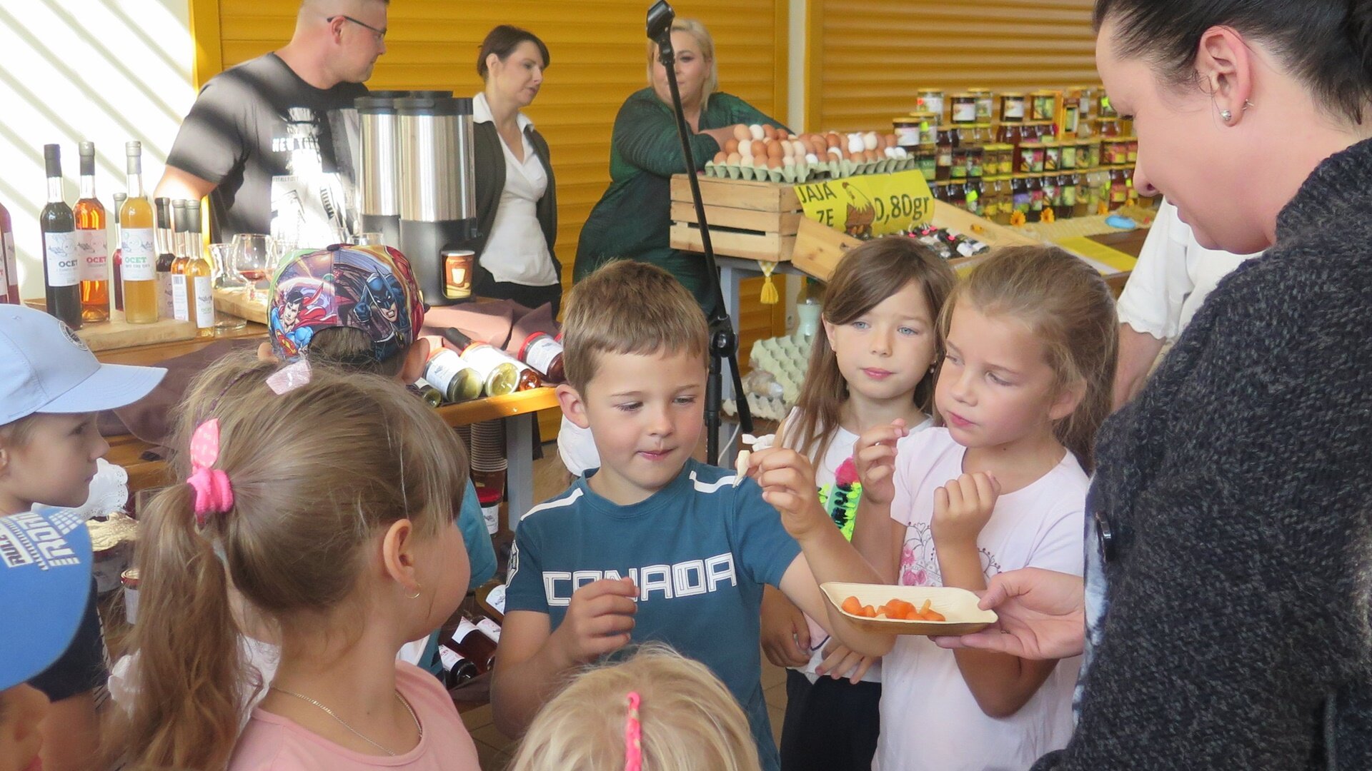Dużo się działo na wczorajszym ekortargu. Tego dnia, w ramach Dni Promocji Zdrowia, zorganizowano dodatkowe atrakcje dla młodszych i starszych. Można było nie tylko zrobić zakupy, ale również popróbować różnych ekologicznych smakołyków, posłuchać o sposobach kiszenia oraz zdrowotnych walorach octów smakowych. Jak było interesująco przekonały się starszaki z Przedszkola w Modrzewiowym Ogrodzie oraz dwie grupy przedszkolaków z Publicznego Przedszkola nr 1 w Pawłowicach. Najmłodsi degustowali soczki owocowe, kiszone marchewki, ogórki, kapustę. Przygotowana została również dla nich niespodzianka, którą była kolorowanka z pawłowicką żabką pt. „MAŁA ŻABKA WAM OPOWIE JAK NALEŻY DBAĆ O ZDROWIE”. Zaś pluszowy miś zaprezentował jak ważne dla naszego zdrowia jest to, co jemy i jak należy dbać o florę bakteryjną  jelit. Nieco starsi, odwiedzający tego dnia ekotarg otrzymali bawełniane ekologiczne torby.