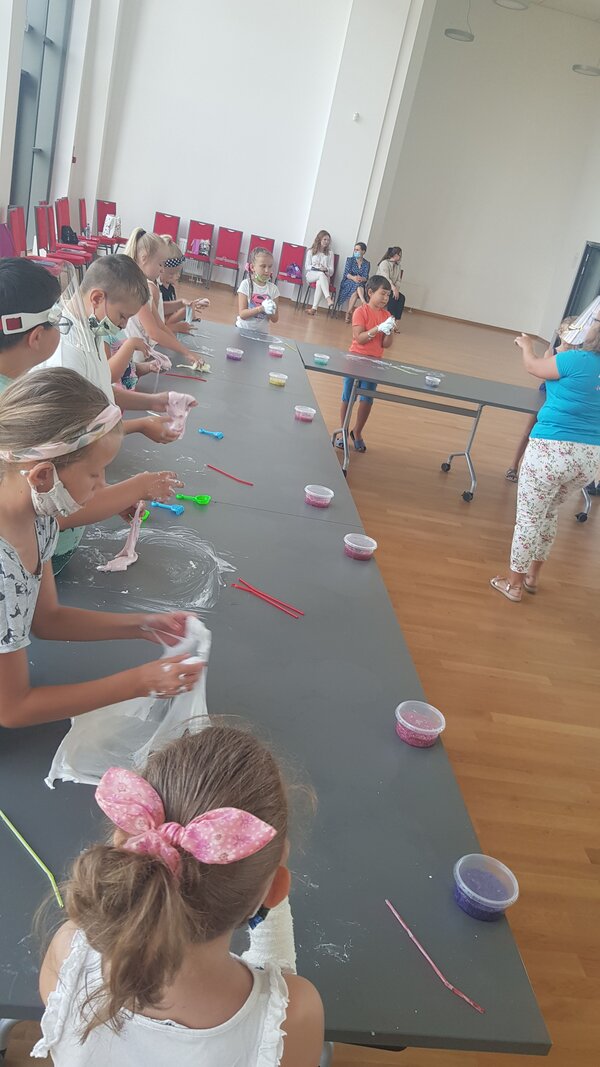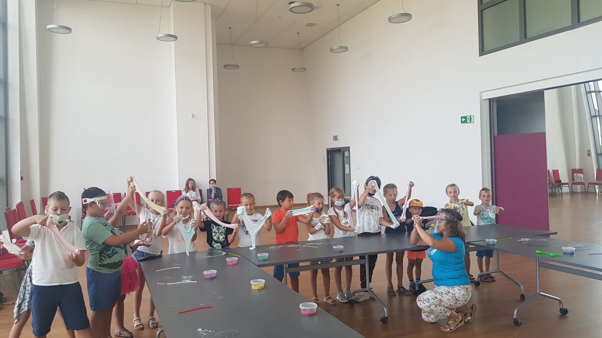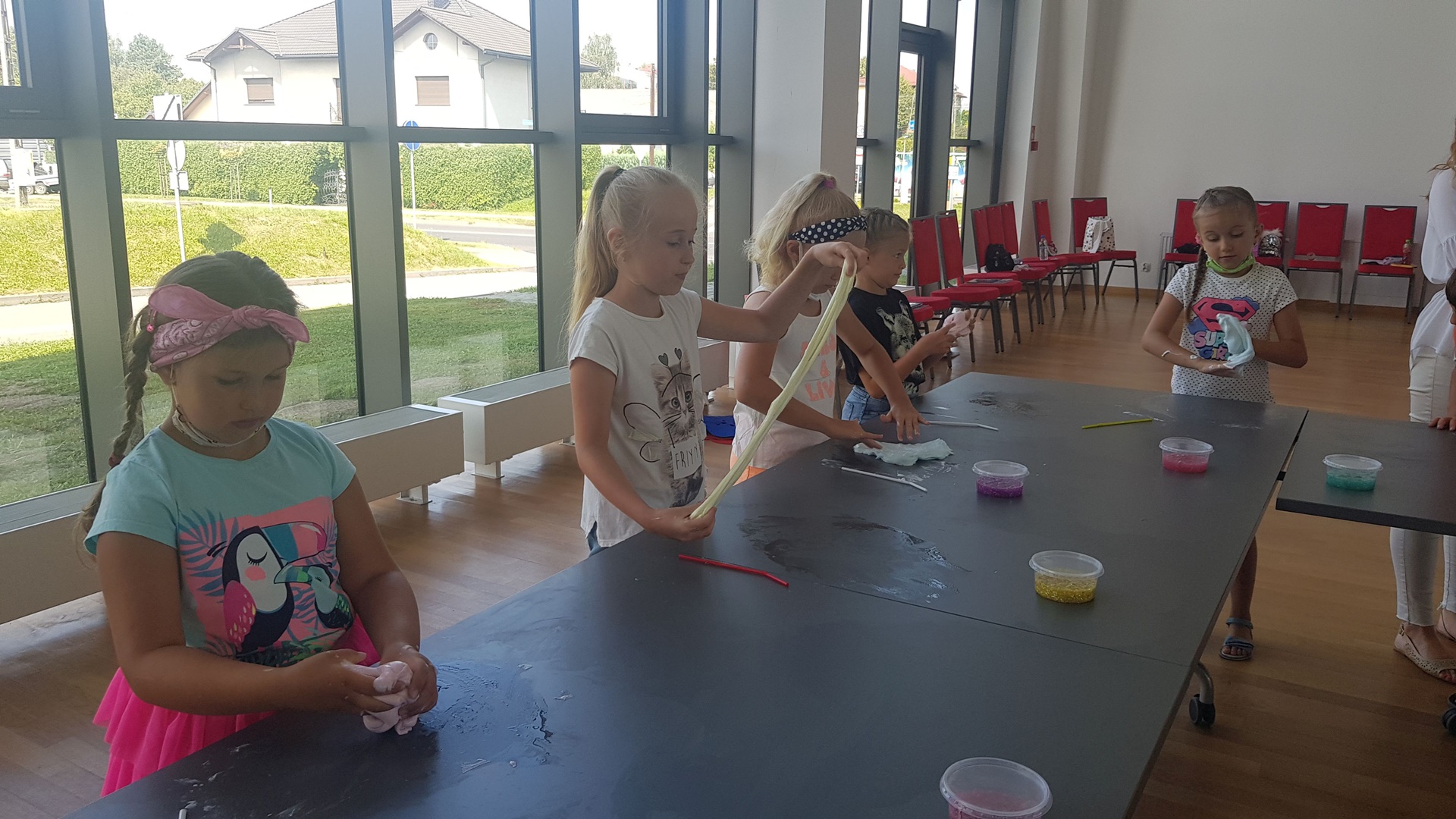 Trochę kleju, pianki, brokatu, kulek, do tego jakiś barwnik oraz aktywator i mamy ulubioną przez wszystkie dzieci masę slime. Począwszy od dzisiaj do przyszłej środy, każdego dnia tygodnia, dzieci w różnych sołectwach mogą uczestniczyć w bezpłatnych warsztatach z masy plastycznej. Zabawa przeznaczona jest dla dzieci w wieku od 6 do 11 lat. Dzisiaj w Centrum Kultury w sali bankietowej najmłodsi rozwijali swą kreatywność, pomysłowość poprzez tworzenie kolorowych, brokatowych slimów. Każdy mógł stworzyć niepowtarzalnego glutka. Wystarczyło kilka składników i odrobina wyobraźni.