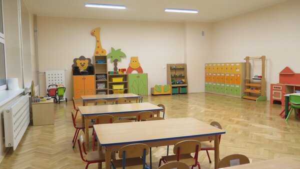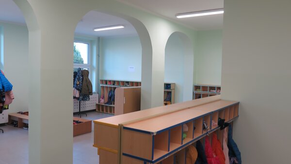 Budynek zmienił się nie tylko w środku, ale również z zewnątrz. Odświeżono elewację obiektu, przebudowano wejście do przedszkola. Wydzielona została szatnia dla dzieci, a w celu zapewnienia bezpieczeństwa – zamontowano system domofonów.