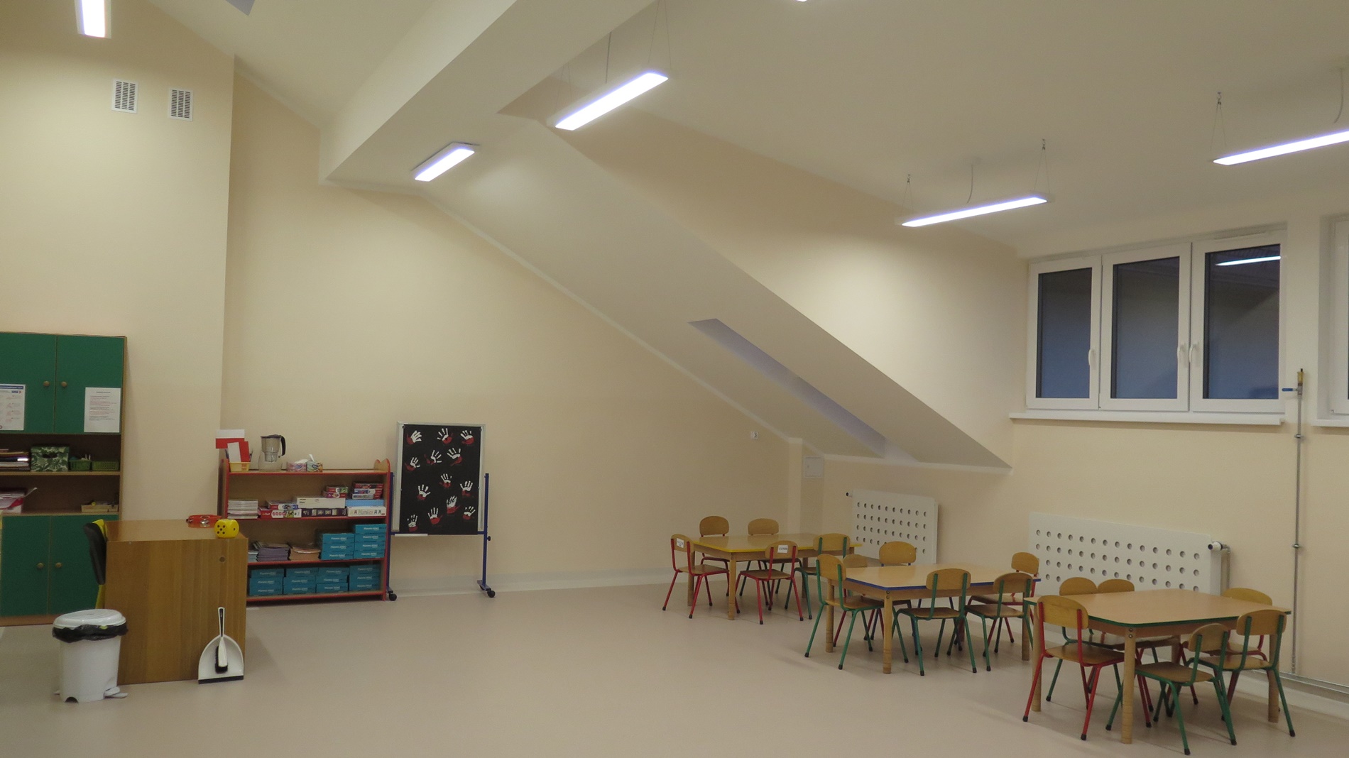 W placówce wykonano szereg prac, dzięki którym przedszkole nabrało nie tylko nowoczesnego wyglądu, ale zwiększona została przestrzeń, komfort oraz bezpieczeństwo użytkowania budynku. Powstała doskonale urządzona kuchnia. Na jej środku znajduje się wyspa, do której zakupiono 10-poziomowy piec konwekcyjno-parowy. Dzięki znajdującym się w nim 10 rusztom, bez problemu będzie można przygotować posiłki dla 175 dzieci uczęszczających do placówki. Piec daje możliwość przygotowania posiłków na różne sposoby, m.in. pieczenie nawet w 300C czy pieczenie z parą. Do gotowania zamontowany został sześciopalnikowy piec gazowy oraz dwa taborety gazowe do gotowania w dużych garnkach. Pozostawiono dotychczasową patelnię elektryczną, która nadal spełnia bez zarzutu swoją funkcję. Nad wyspą zamontowano nowy okap nawiewno-wywiewny, a dla całej kuchni i zaplecza kuchennego - nową wentylację. Nowością jest też zmywalnia ze stołem załadowczo-wyładowczym i gastronomiczną zmywarką kapturową. Pojawiły się też nowe szafy i nowe zlewozmywaki z nierdzewnej stali. Dla pracowników kuchni wyremontowano również łazienkę.Aby zwiększyć liczbę dzieci przyjmowanych do przedszkola, wyodrębniono dodatkową salę. Było to możliwe dzięki podzieleniu wysokiego pomieszczenia stropem. W przedszkolu na piętrze powstał więc dodatkowy, przestronny pokój. Ponadto powstały dwie nowe łazienki (na parterze i pierwszym piętrze) dostosowane do potrzeb osób niepełnosprawnych oraz winda. Budynek został także dostosowany do aktualnych przepisów przeciwpożarowych. Na klatce schodowej zamontowano klapę dymną, która dzięki specjalnym czujnikom będzie samoczynnie się otwierać w momencie pojawienia się dymu. Przebudowano instalację hydrantową, wycyklinowano podłogi, zabudowano nowe grzejniki wraz z osłonami, odnowiono pomieszczenia administracji.