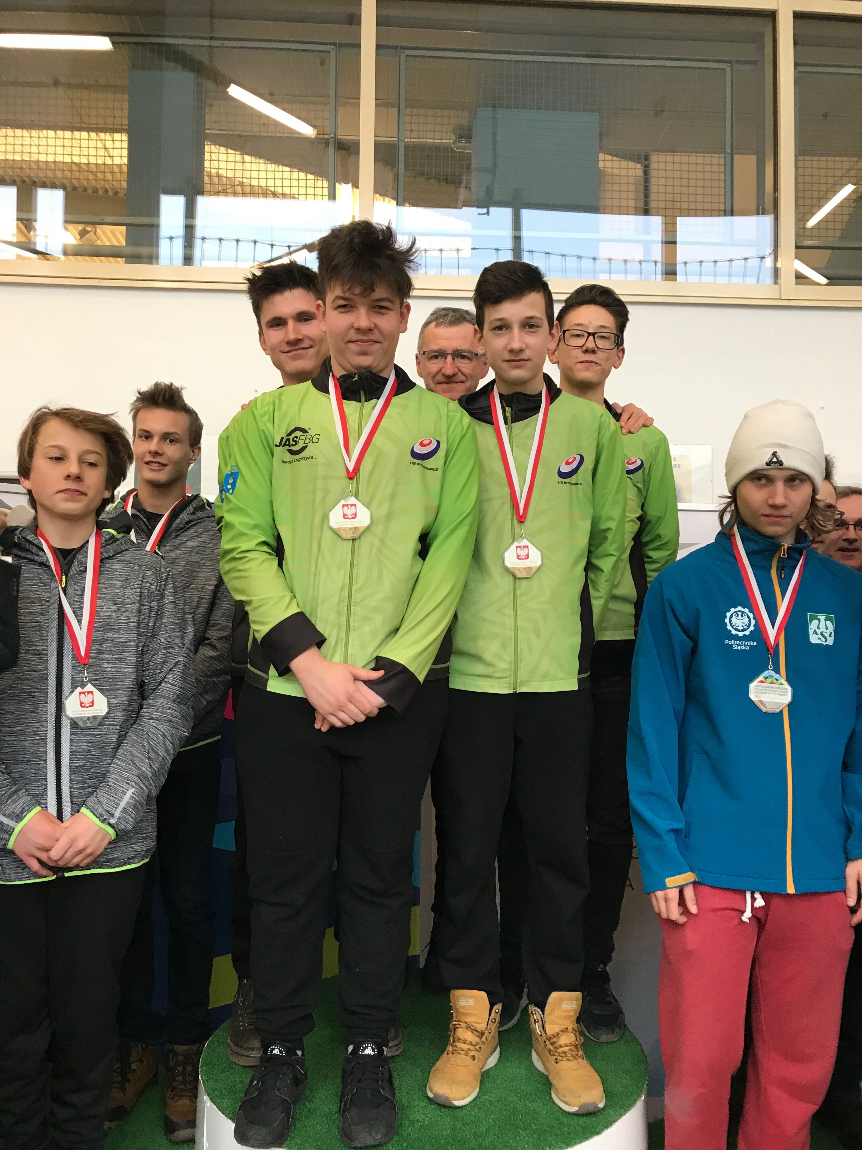 Chłopcy z kolei w składzie: Dominik Szmidt, Robert Kamiński, Bartosz Porwisz i Szymon Gęborys mieli trudniejszą ścieżkę do swojego sukcesu. Po zaciętych meczach z POS Łódź, City CC Warszawa i AZS PŚ Gliwice w których za każdym razem o zwycięstwie decydowała dodatkowa partia – tzw. "extra end" i za każdym razem szala przechylała się ostatecznie na korzyść naszych chłopaków, weszli do finału. W nim to spotkali się ponownie z Warszawiakami. Bardzo ciężko rozpoczęli to spotkanie przegrywając 3 kolejne partie po 1 kamieniu. Po przerwie, w czwartej partii wygrali za 2 punkty co pozwoliło im uwierzyć w siebie. W piątej po raz kolejny wygrali za 2 i w ostatnim endzie przypieczętowali zwycięstwo kolejną dwójką. Tak więc ostateczny wynik 6:3 dla KS "4G" i mistrzostwo Polski przypadło naszym chłopakom. W rozgrywanej później jeszcze konkurencji Par Mieszanych nasi zawodnicy ukończyli zawody na 5., 6. i 7 miejscu.Tak dobra postawa zawodników pozwoliła naszemu gminnemu klubowi zająć z wynikiem 51,5 punktów pierwsze miejsce w Polsce w klasyfikacji Systemu Sportu Młodzieżowego z przewagą ponad 15 punktów nad drugim w klasyfikacji POS Łódź. Również w klasyfikacji wojewódzkiej Śląsk zdobył pierwsze miejsce, a trofeum za nie odebrał trener Damian Herman. Wspaniałe osiągnięcie.foto: KS Warszowice