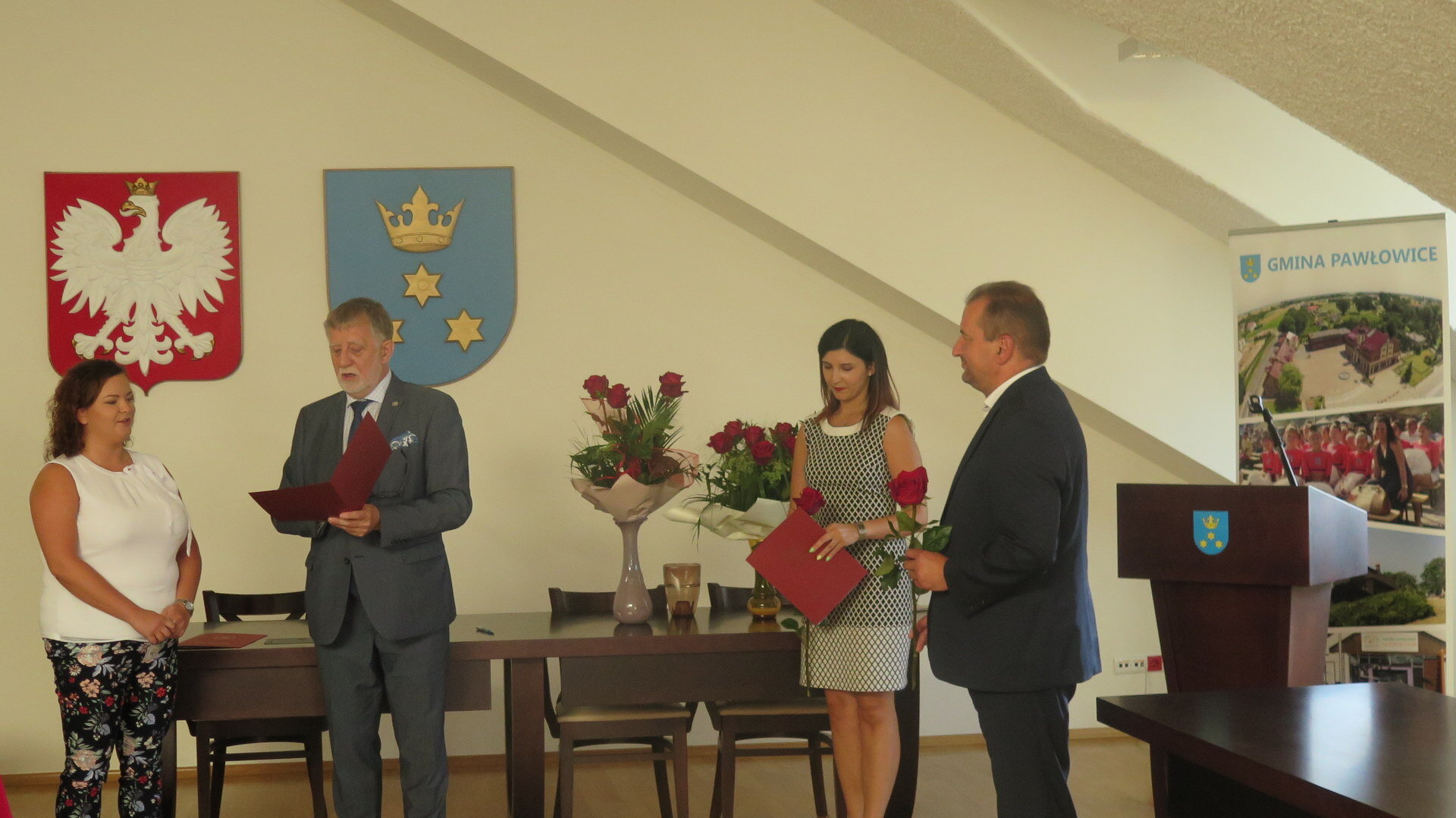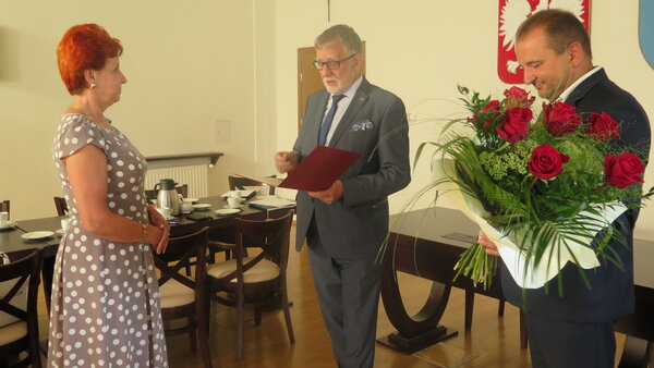 Na dzisiejszym spotkaniu dyrektorów jednostek oświatowych z wójtem odbyło się wręczenie aktu nadania stopnia nauczyciela mianowanego. Nauczycielki Anna Kowalik oraz Anna Wawerska, po odbyciu 2 lat i 9 miesięcy stażu, następnie pozytywnie ocenionym egzaminie i złożeniu w dniu dzisiejszym uroczystej przysięgi otrzymały, z rąk wójta Franciszka Dziendziela, awans na nauczyciel mianowanego. Obecność dyrektorów była również okazją aby wspólnie podziękować Zofii Musiał, dyrektorce Zespołu Szkolno-Przedszkolnego w Pawłowicach, za lata współpracy, za okazane zaangażowanie i życzliwość. Dyrektorka zaznaczyła, że mimo emerytury, sprawy szkoły i jej wychowanków zawsze były, są i pozostaną bliskie jej sercu. Obowiązki dyrektora szkoły przejmie Anna Ganiek.