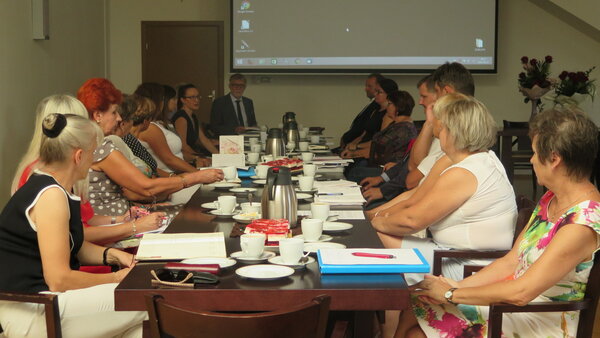 Podczas spotkania poruszono również bieżące tematy m.in. konieczność uaktualnienia i ujednolicenia adresów poczty elektronicznej, planowanie przeprowadzenia inwentaryzacji w placówkach, a także o trwających i zbliżających się remontach. Tematem nowym, którym najbardziej zainteresowani będą uczniowie jest powstanie Młodzieżowej Rady Gminy. Już na jesień odbędą się w szkołach wybory, w wyniku których zostanie wyłonionych 15 młodych radnych.