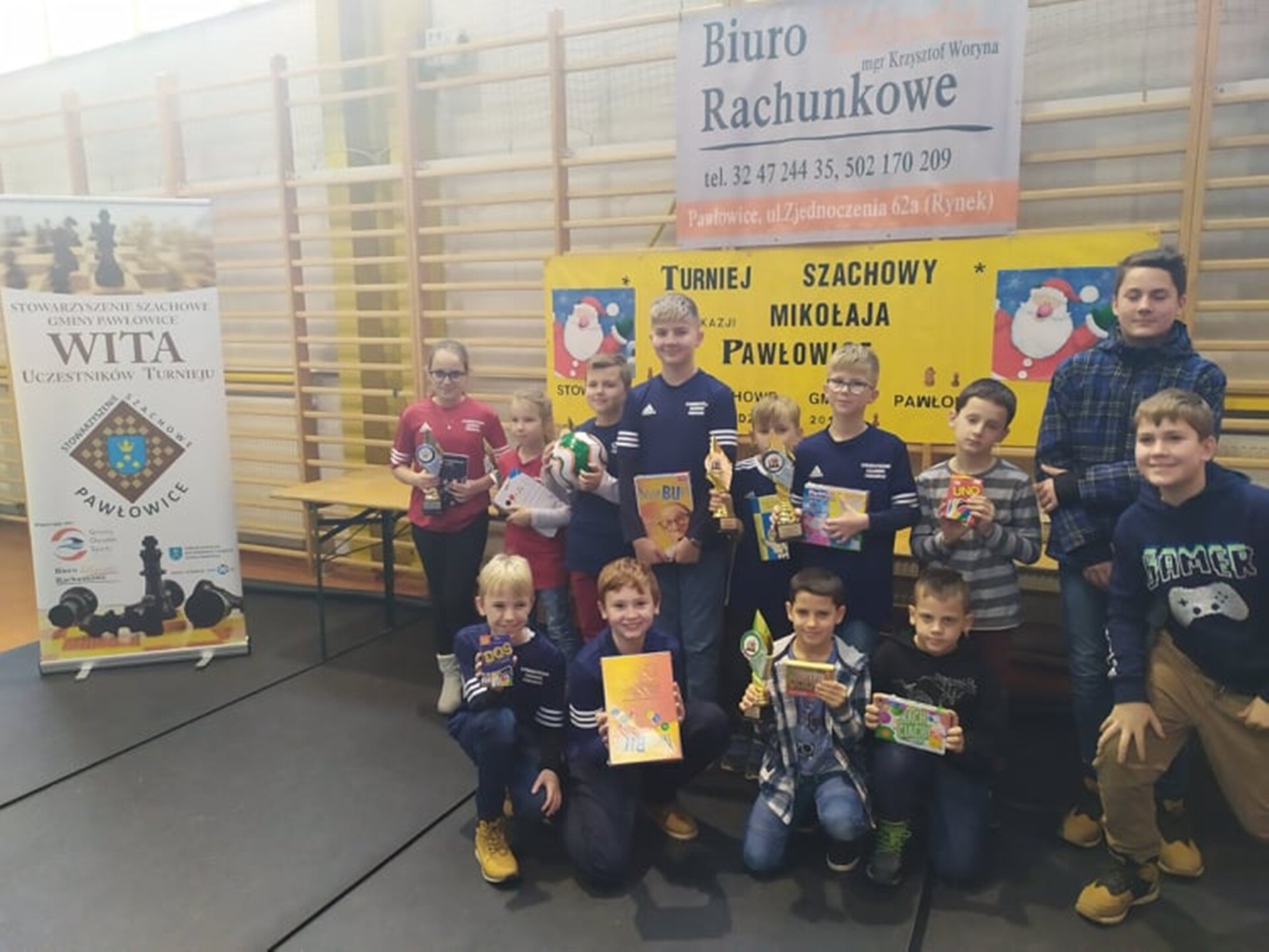 Wśród 18 dzieci ze Stowarzyszenia Szachowego Gminy Pawłowice najlepszy wynik uzyskali w klasach IV-VIII: Radosław Sobik, Bartosz Mruk,Filip Chwastykowski, w klasach I-III: Igor Musiolik, Franek Goyke, Cezary Borowski, wśród dziewczynek kl. I-III najlepsza była Paulina Trzaskalik, a w klasach IV-VIII Weronika Gawełczyk. Dodatkowo nagrodzono Pucharami 3 najlepsze rodzeństw spośród 12 biorących udział.