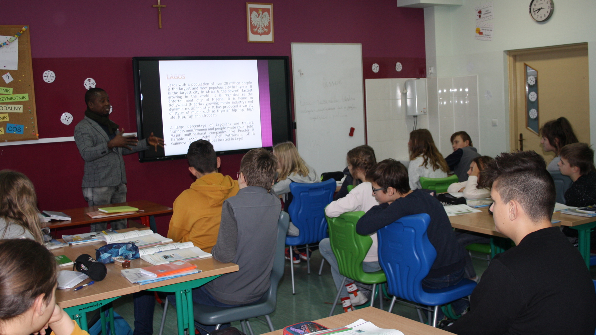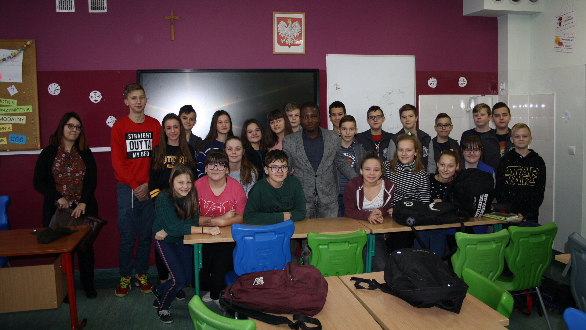 Nikt w Szkole Podstawowej w Pielgrzymowicach nie spodziewał się, że szczyt klimatyczny ONZ odbywający się w Katowicach, będzie okazją do odwiedzenia szkoły przez jednego z jego uczestników. Za sprawą absolwentki szkoły, do Pielgrzymowic przyjechał Douglas Efosa Omoruyi na co dzień mieszkaniec Lagos w Nigerii.