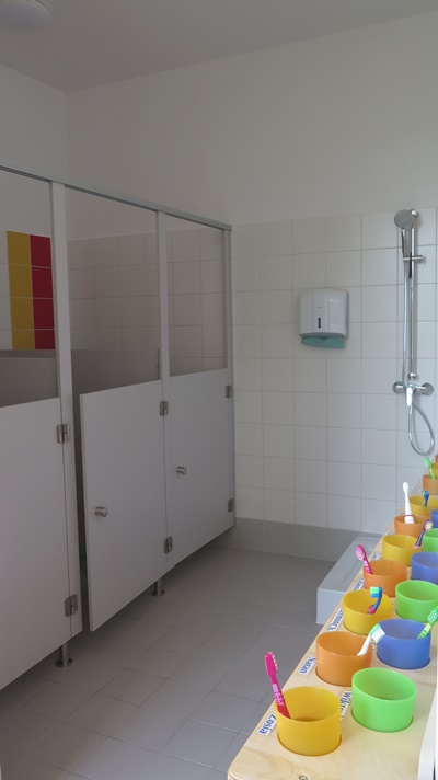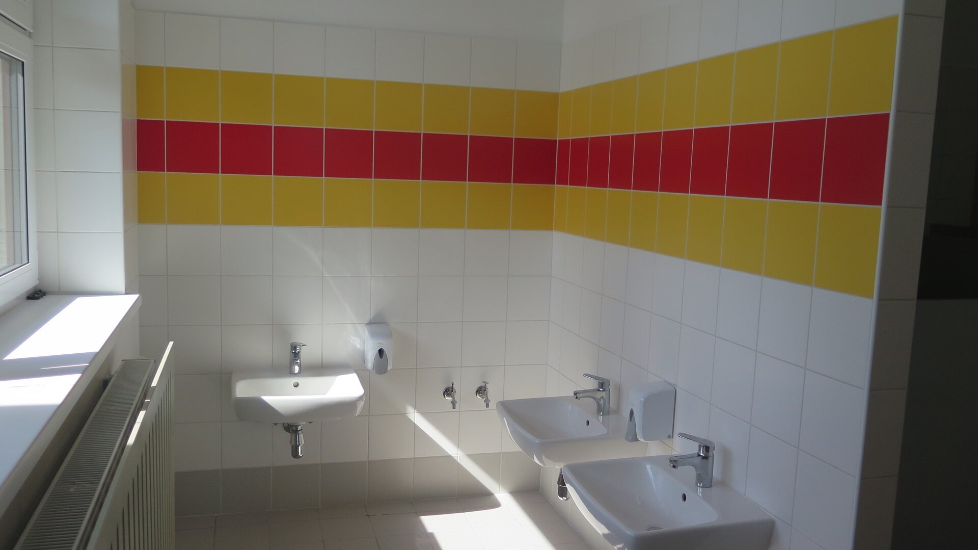 Aranżacja nowych łazienek dla przedszkolaków już na półmetku. W Publicznym Przedszkolu nr 1 wyremontowano łazienki na dwóch kondygnacjach w jednym pionie. Prace polegały na wyburzeniu ścianki, położeniu nowej posadzki i nowych płytek na ścianach. Zamontowano nowa armaturę. Pomieszczenia nabrały nowoczesnego, kolorowego wyglądu. W łazienkach oraz w salach przy łazienkach wymieniono okna. Obecnie trwają podobne prace w drugim pionie. Zadanie realizuje firma Skid Sp. z o.o. PPHU z Pawłowic.