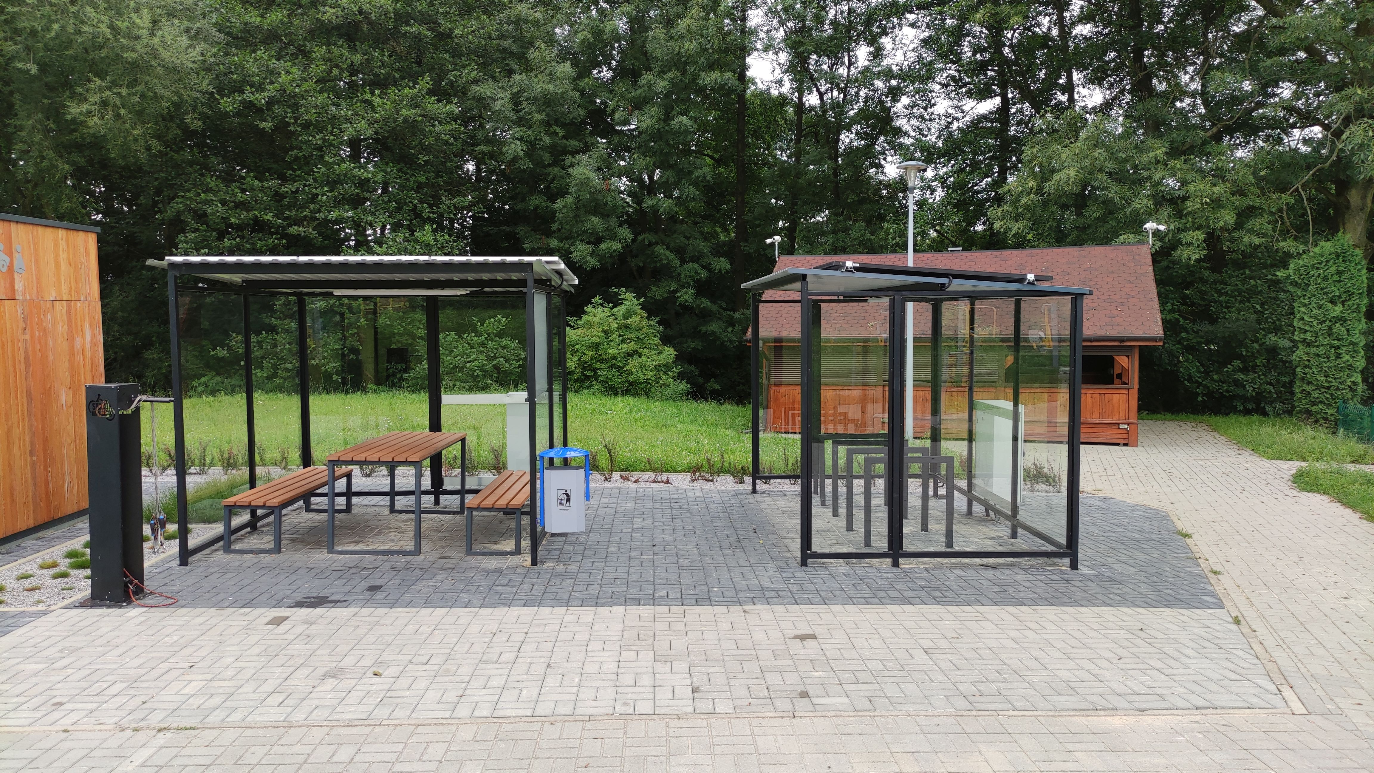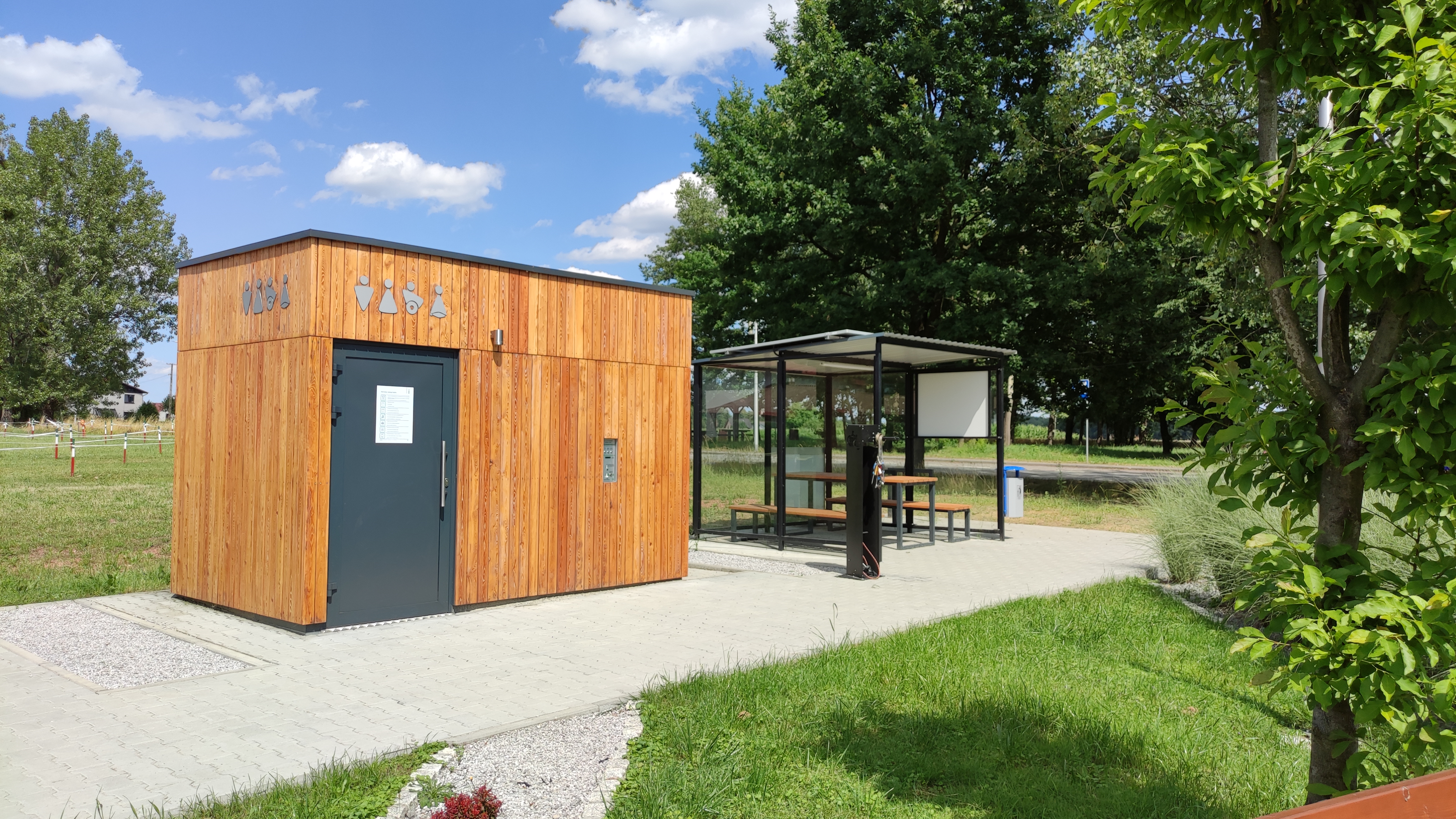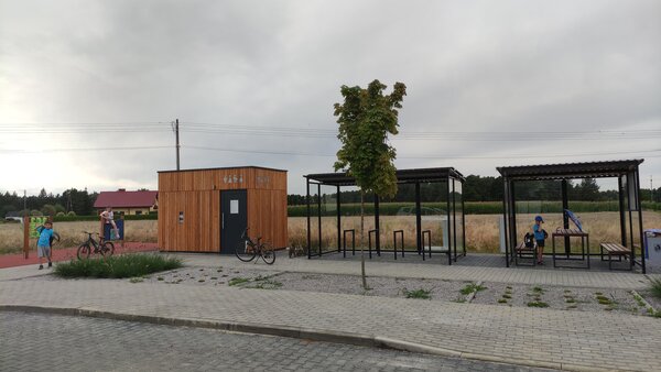 (zadaszona wiata rowerowa, zadaszona wiata rekreacyjna, toaleta publiczna, samoobsługowa stacja naprawy rowerów)