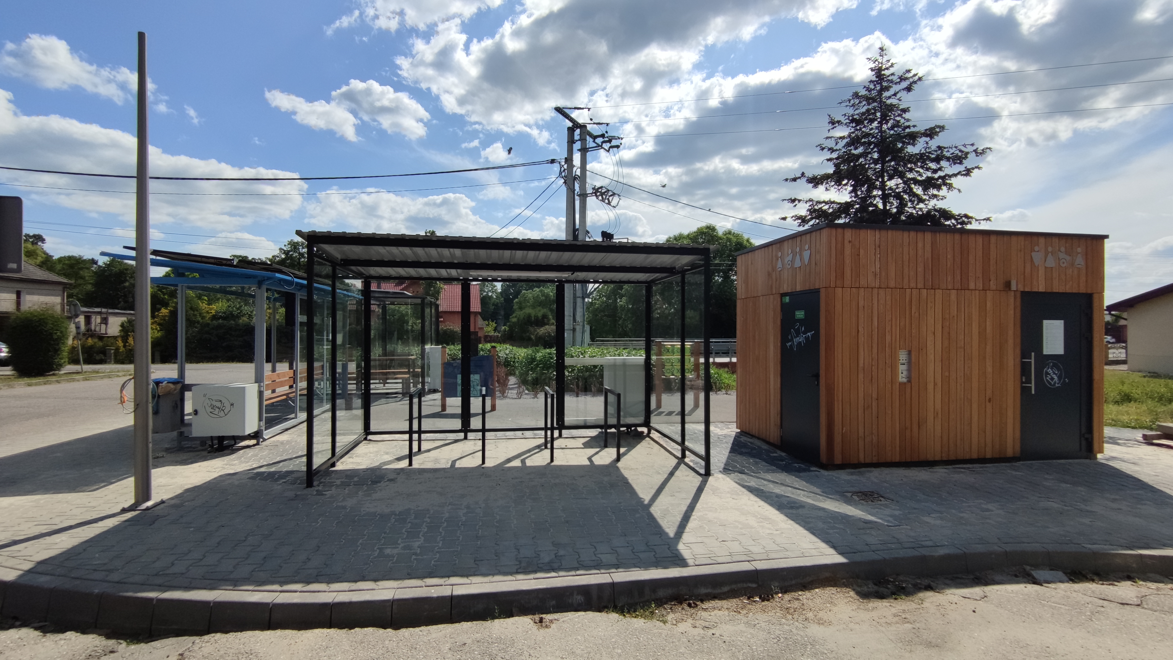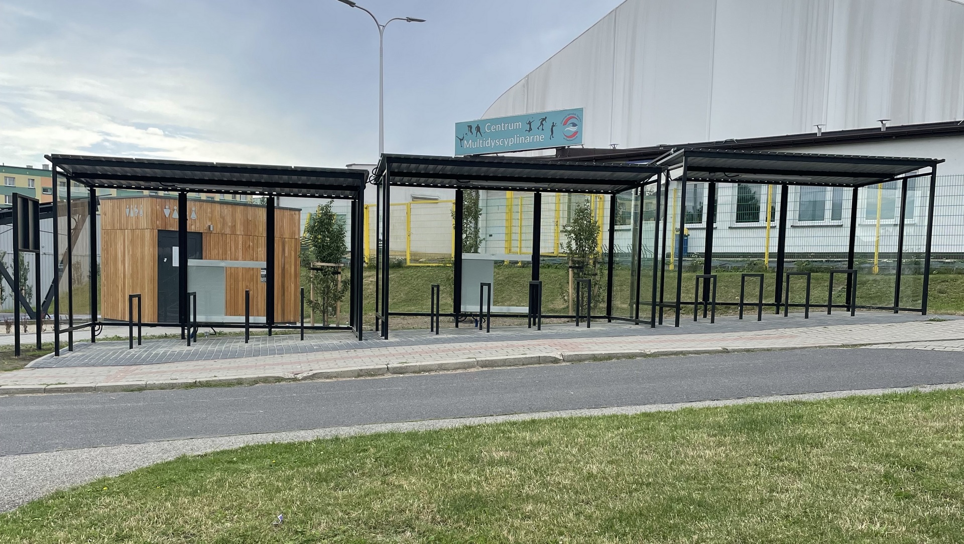 (zadaszone wiaty rowerowe, toaleta publiczna)