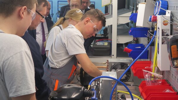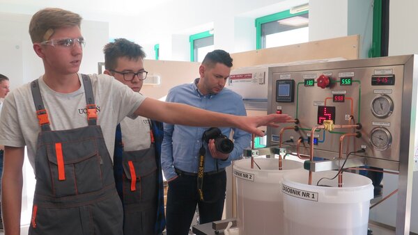 W nowej pracowni uczniowie technikum logistycznego korzystają przede wszystkim z indywidualnych komputerów z nowoczesnym oprogramowaniem umożliwiającym naukę zagadnień związanych z  logistyką, spedycją i transportem. Podczas lekcji m. in. obliczali, o której musi wyruszyć  transport z Pawłowic, aby przez Warszawę dojechać do Rzeszowa na godzinę 16.00. Natomiast w pracowni do nauki chłodnictwa i klimatyzacji uczniowie zaprezentowali stanowiska dydaktyczne m. in. z chłodniczym układem szkoleniowym, z modelem pompy ciepła, klimatyzatorem i komorą chłodniczą, w której temperatura może być obniżona nawet do minus 20 stopni Celsjusza!