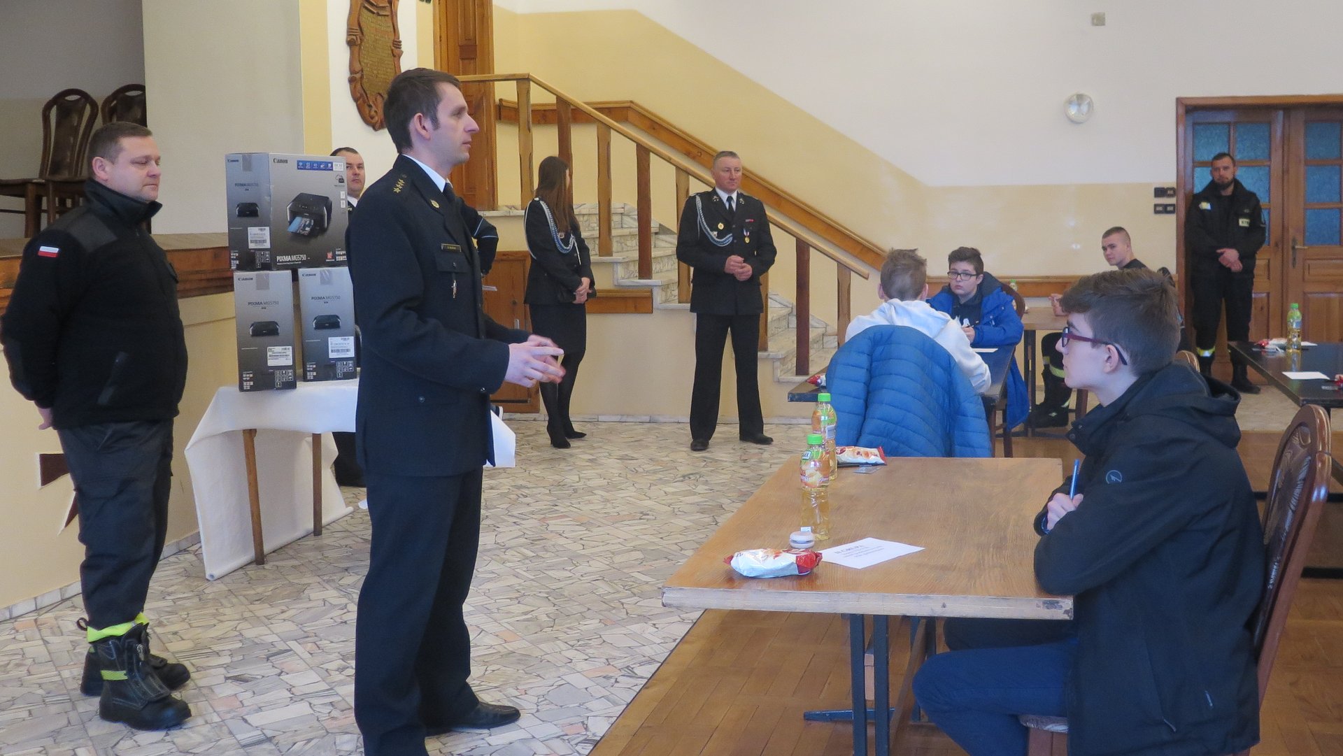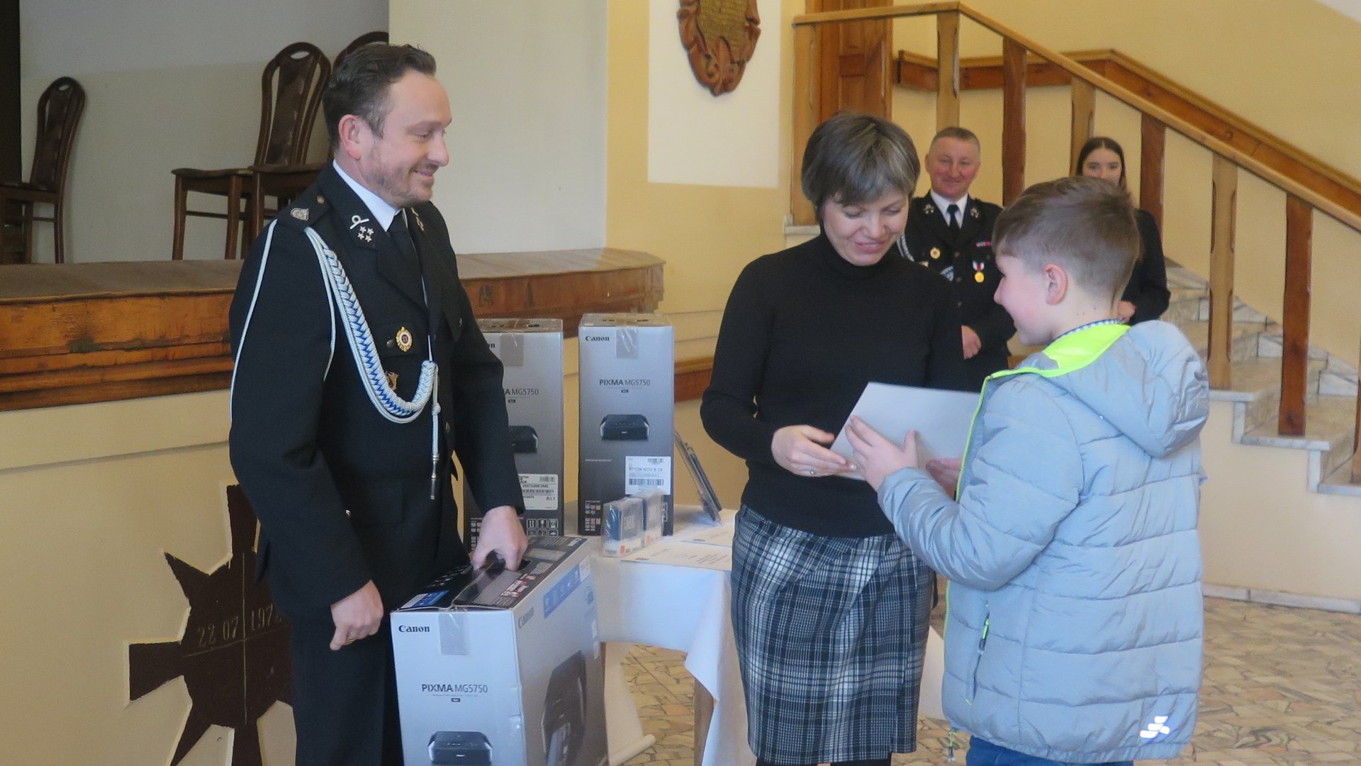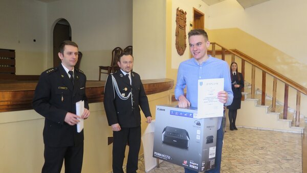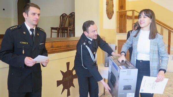 Laureaci otrzymali z rąk prezesa OSP Golasowice Andrzeja Chmiela nagrody ufundowane przez gminę Pawłowice: urządzenie wielofunkcyjne m .in. do drukowania, power banki oraz głośniki bezprzewodowe.