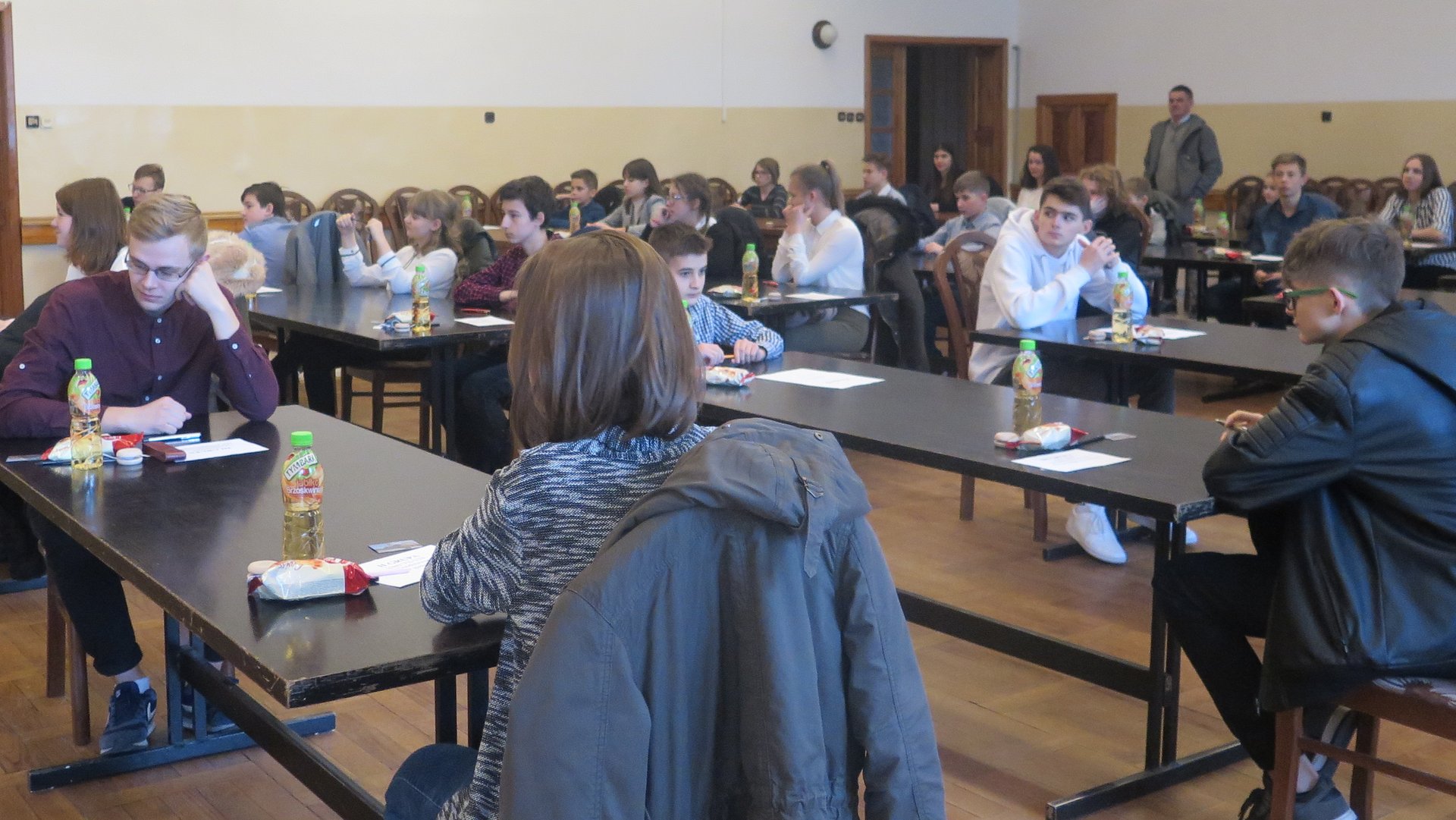 Ponad 30. uczniów ze szkół podstawowych, klas gimnazjalnych i szkół ponadgimnazjalnych walczyło o pierwsze miejsca, które gwarantują udział w eliminacjach powiatowych. Uczestnicy konkursu rozwiązywali test pisemny, który oceniało jury w kładzie: Adam Muras- przewodniczący, Tomasz Lazar, Michał Wowra, Jarosław Krośnik oraz Marek Plinta.