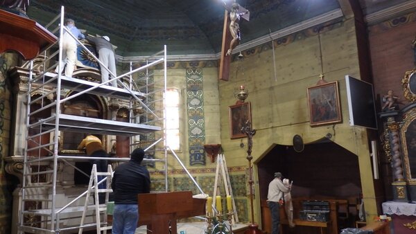 Przywracanie oryginalnego wystroju wnętrza Kościoła rozpoczęto odrestaurowaniem zabytkowej ambony w 2016 r. Zadanie zrealizowano, w dużej mierze, dzięki staraniom i nakładom samych parafian. Prace konserwatorskie wykonał Jan Gałaszek, konserwator dzieł sztuki. Starostwo Powiatowe w Pszczynie udzieliło dotacji w wysokości 15 tys. zł. Kolejnym krokiem było przeprowadzenie I etapu prac konserwatorskich i restauratorskich polichromii ścian, stropu i fasety prezbiterium. Zadanie obejmowało w pierwszej kolejności badania odkrywkowe polichromii i stwierdzeniu czy nie pojawiają się starsze zdobienia. Następnie przystąpiono do renowacji podłoża, oczyszczenia i dezynfekcji powierzchni polichromii, utwardzenia uszkodzonego przez szkodniki biologiczne drewna. Zlikwidowano większe ubytki i głębokie pęknięcia aby ostatecznie przystąpić do rekonstrukcji złoceń i srebrzeń - podkreślenia dekoracyjnych ornamentów oraz krzyża na sklepieniu prezbiterium. Zakończenie I etapu prac uwieńczyło w minionym miesiącu zamontowanie w prezbiterium dwóch żyrandoli w stylu neogotyckim. Na realizację powyższych prac pozyskano dofinansowanie z Europejskiego Funduszu Rolnego na rzecz Rozwoju Obszarów Wiejskich: Europa inwestująca w obszary wiejskie. Otrzymane środki zewnętrzne pokryły ok. 69% kosztów prac konserwatorskich i restauratorskich. Obecnie pozostaje w renowacji ołtarz główny wraz z obrazem św. Katarzyny, które jeszcze w tym roku mają powrócić do Kościoła. Będzie to zakończenie I etapu prac konserwatorskich. Planowana jest dalsza renowacja Kościoła, który jest nieodłącznym elementem krajobrazu gminy Pawłowice.