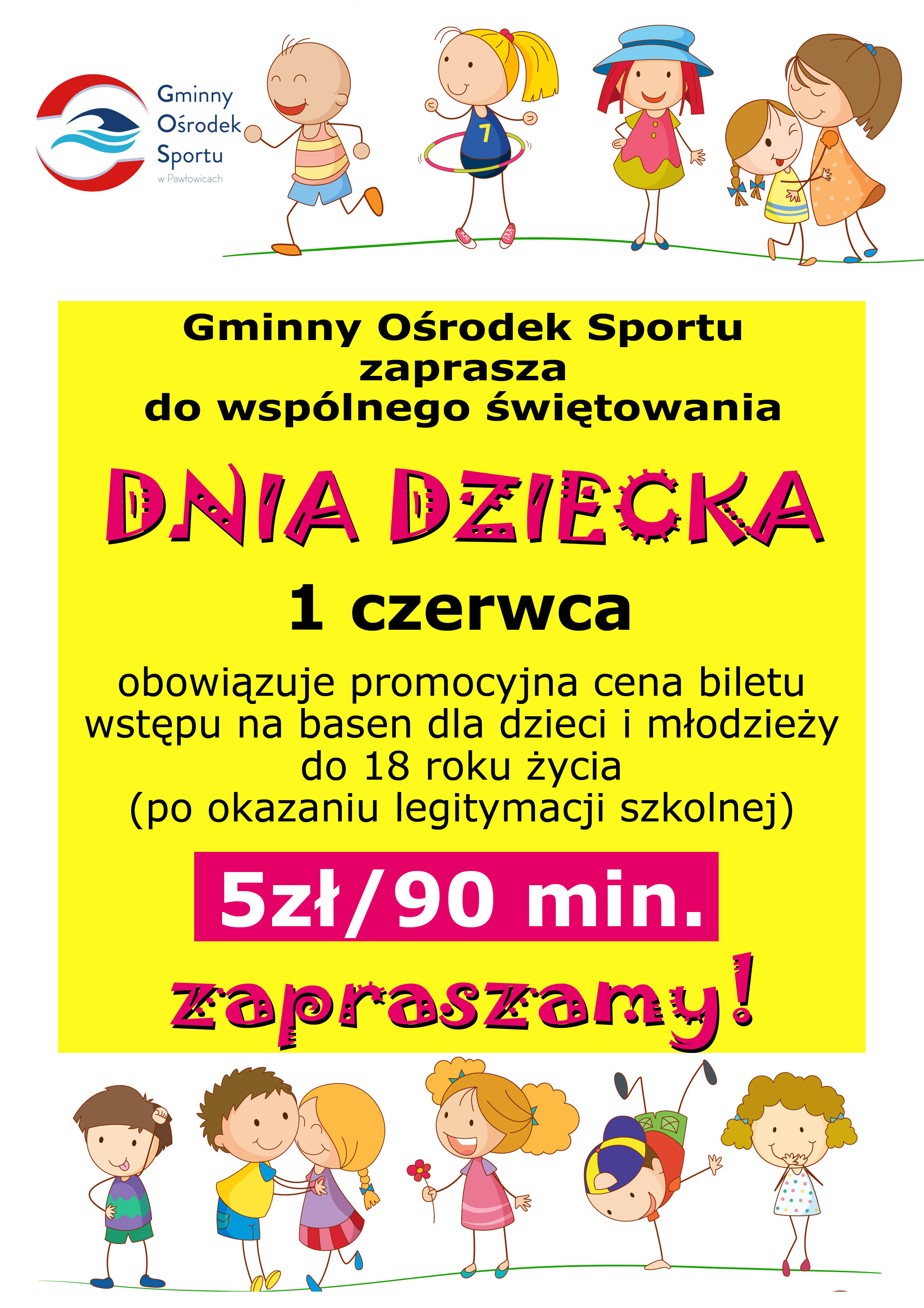 1 czerwca, z okazji Dnia Dziecka obowiązuje promocyjna cena biletu wstępu na basen.