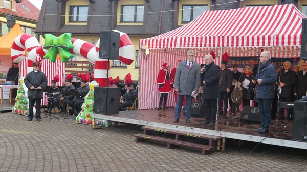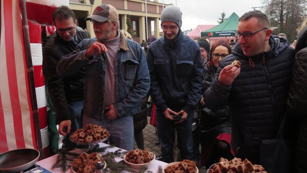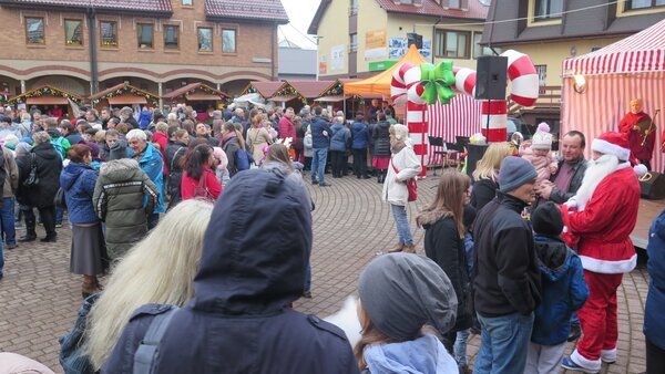 Zakupy na jarmarku można było robić już od wczoraj, ale wspólną zabawę zaplanowano na niedzielę, 22 grudnia. Wczesnym popołudniem na rynku zabrzmiała orkiestra dęta KWK „Pniówek” pod batutą Józefa Klimurczyka, a wójt gminy Franciszek Dziendziel złożył wszystkim świąteczne życzenia. Również ks. Eugeniusz Paruzel – proboszcz parafii św. Jana Chrzciciela w Pawłowicach życzył wszystkim zebranym radosnych świąt. Bożonarodzeniowy nastrój to zasługa kolęd, pastorałek i piosenek świątecznych, które rozbrzmiewały najpierw w wykonaniu wójta, radnych i sołtysów, a potem gminnych zespołów: Jarząbkowianek i Violi. Nie zabrakło również dziecięcych głosów z zespołu Fantazja oraz solistek - laureatek konkursu kolędowego organizowanego przez Zespół Szkolno-Przedszkolny w Pawłowicach: Oliwii Woryny i Julianny Miłoty.