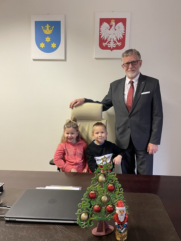 Początkiem grudnia odbyło się spotkanie wójta Franciszka Dziendziela z emerytowanymi pracownikami urzędu. Odwiedziny były okazją do złożenia bożonarodzeniowych życzeń, wręczenia gminnych kalendarzy na rok 2024 oraz przekazania informacji o tym, co obecnie dzieje się w gminie i jak pracuje urząd. Dla emerytów to również czas odwiedzin u koleżanek i kolegów, którzy jeszcze pozostają aktywni zawodowo.W okresie przedświątecznym wójta gminy odwiedza wiele gości, a wśród nich przedszkolaki z gminnych przedszkoli. Najmłodsi składają życzenia, wręczają własnoręcznie wykonane upominki, śpiewają kolędy. Wizyta w urzędzie jest też okazją do „przymierzenia się” do fotela wójta. W tym roku z życzeniami przyszli Bartek i Hania z Publicznego Przedszkola Nr 1 w Pawłowicach wraz z nauczycielkami.Do urzędu trafiło też Betlejemskie Światełko Pokoju przyniesione przez pawłowickich harcerzy oraz wiele kartek świątecznych. Życzenia płyną między innymi ze szkół i przedszkoli, jednostek organizacyjnych gminy, instytucji publicznych i prywatnych, przedsiębiorców oraz zaprzyjaźnionych miast partnerskich. Kartkę z życzeniami świątecznymi Gmina otrzymała również od  Zuzi Polak, 13 letniej mieszkanki gminy znanej jako „Zuza Walcząca”, u której w 2021 roku zdiagnozowano nowotwór. Zuzia w kartce przekazała  podziękowania dla wszystkich mieszkańców gminy Pawłowice za otrzymane wsparcie w walce z chorobą.  Wójt Franciszek Dziendziel wraz ze swoją zastępczynią Joanną Śmieją uczestniczyli w spotkaniach wigilijnych przygotowywanych przez Ośrodek Pomocy Społecznej dla osób starszych i samotnych oraz osób z niepełnosprawnościami. W gminie Pawłowice jest również wiele osób, które na co dzień potrzebują wparcia i pomocy innych. W Domu Pomocy Społecznej w Pielgrzymowicach mieszkają kobiety i dziewczęta (wiele z nich jest w ciężkim stanie zdrowotnym) a w Zakładzie Opiekuńczo-Leczniczym w Krzyżowicach przebywają osoby terminalnie chore. Obie placówki organizują przedświąteczne spotkania dla swoich podopiecznych. Również wiele osób, organizacji i instytucji organizuje różnego rodzaju akcje charytatywne i działania wspierające funkcjonowanie placówek. W Boże Narodzenie pomyślmy z życzliwością  właśnie  o tych mieszkankach i mieszkańcach naszej gminy, którzy sami nie mogą zorganizować sobie świąt.