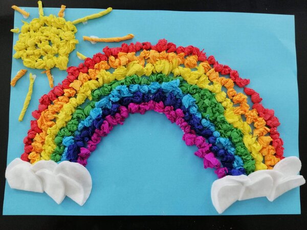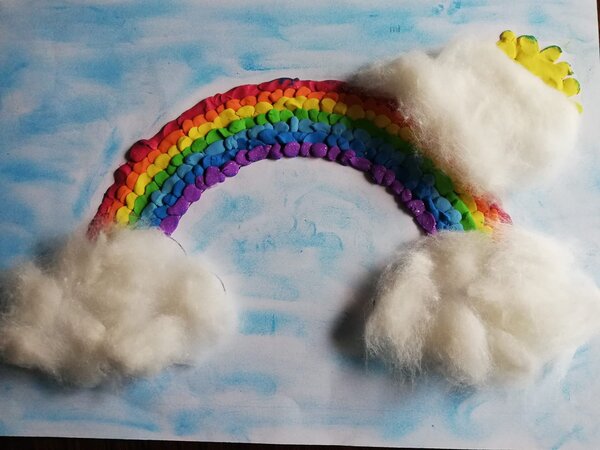 Przedszkolaki z pielgrzymowickiego przedszkola z okazji Dnia Dziecka przygotowały tęczę dla uczniów, wychowanków i pracowników Oddziału Szkoły Specjalnej w Pielgrzymowicach.