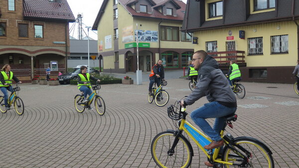 Rowery działają dzięki aplikacji, którą należy ściągnąć na swój telefon ze sklepu internetowego Google Play lub AppStore. Z jej pomocą znajdziemy wszystkie aktualne miejsca postoju rowerów, sprawdzimy ile z nich jest aktualnie dostępnych, a następnie otworzymy zamek roweru i ruszymy w drogę. Jednoślady zostały zaprojektowane w ramach tzw. czwartej generacji, co oznacza, że nie wymagają one stacji dokujących, a cały system jest bardzo elastyczny i można go odpowiednio modyfikować w zależności od potrzeb mieszkańców. Wczoraj harcerze z 14. Wielopoziomowej Drużyny Ratowniczej im. Krysi Niżyńskiej, pracownicy urzędu gminy, wójt Franciszek Dziendziel oraz Przewodniczącym Rady Gminy Aleksander Szymura rozwieźli 20 rowerów gminnych do punktów postojowych. Rowerami będzie można podróżować na terenie całej gminy, wykorzystując m. in. nasze ścieżki i trasy rowerowe oraz zostawić w innym miejscu postojowym niż tym, z którego rower wypożyczyliśmy. Wypożyczając na przykład rower przy eko targu, będziemy go mogli zostawić w punkcie przy inhalatorium. Każdy rower jest także wyposażony w urządzenie pozwalające na jego bieżącą lokalizację, elektroniczny zamek z modułem GPS oraz modułem transmisji danych, zintegrowane światło przednie oraz światło tylne zasilane z dynama, opony nieulegające przebiciom, mały przedni bagażnik, nóżkę, dzwonek oraz komfortowe, regulowane siodełko. Dzięki modułowi GPS kradzież roweru będzie niemożliwa.