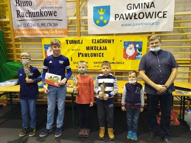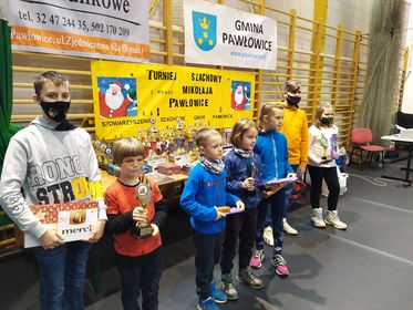 Dnia 29 listopada 2020 r. Stowarzyszenie Szachowe Gminy Pawłowice zorganizowało w Gminnym Ośrodku Sportu w Pawłowicach Mikołajkowy Turniej Szachowy dla dzieci szkół podstawowych. W turnieju udział wzięło 58 dzieci, rywalizujących na dystansie 9 rund po 10 minut na zawodnika w następujących kategoriach:I - chłopcy: klasy 1-3II - chłopcy: klasy 4-8III - dziewczynki: klasy 1-3IV - dziewczynki: klasy 4-8Cały turniej w grupie 58 zawodników wygrał: Borys Witczak z UKS Hetman Częstochowa,II miejsce: Alicja Wojs z UKS Baszta Wodzisław Śląski,III miejsce: Samuel Maj z MAT Myślenice.W kategorii chłopców klasy 1-3 zwyciężył Borys Witczak,II miejsce - Mikolaj Słobodzian,III miejsce - Jakub KałużaW kategorii chłopców klasy 4-8 zwyciężył Samuel Maj,II miejsce - Kamil Pawłowski,III miejsce - Bartosz Mruk z Stowarzyszenia Szachowego Gminy Pawłowice. W kategorii dziewczynek klasy 1-3 zwyciężyła Karolina Figa,II miejsce - Blanka Polakiewicz,III miejsce - Zuzanna Kamińska.W kategorii dziewczynek klasy 4-8 zwyciężyła Alicja WojsII miejsce - Natalia Strzoda,III miejsce - Nikola Herezy.Wśród 10 dzieci ze Stowarzyszenia Szachowego Gminy Pawłowice najlepszy wynik uzyskali w klasach IV-VIII: Bartosz Mruk, Radosław Sobik, Jeremiasz Gębusia, Filip Chwastykowski i Dominik Musiolik, w klasach I-III: Filip Sokół, Bartłomiej Knaś, Igor Musiolik i Wojciech Knaś. Natomiast wśród dziewczynek w klasach IV-VIII najlepsza okazała się Weronika Gawełczyk. Dodatkowo nagrodzono Pucharami trzy najlepsze rodzeństwa spośród jedenastu biorących udział. Pierwsze miejsce wśród rodzeństw zajęli Kamil i Filip Pawłowski z Ogniska TKKF Dobczyce, drugie miejsce Natalia i Szymon Strzoda z UKS Pionier Jastrzębie, a trzecie Daria i Mikołaj Słobodzian z MUKS SZS Cieszyn.Wszystkie dzieci otrzymały słodycze i nagrody a najlepsi puchary. Turniej przeprowadzili i sprawnie poprowadzili członkowie Stowarzyszenia Szachowego Gminy Pawłowice.
