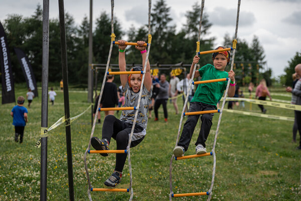 W sobotnie przedpołudnie na trasę "poligonu strażackiego" OSP Pawłowice wybiegły dzieci oraz ich rodzice by spróbować swoich sił w nowej formule FUN, przeznaczonej dla całych rodzin. O godzinie 1400 na starcie pojawiły się już tylko i wyłącznie dzieci 4-13 lat, które walczyły na krótszej trasie w formule KIDS.
