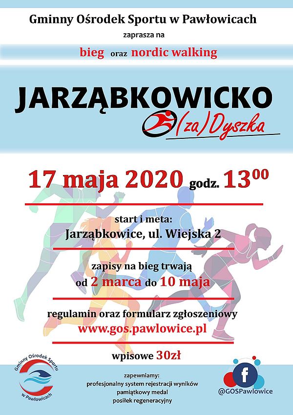 Bieg pod nazwą "Jarząbkowicko (za)Dyszka" odbędzie się w dniu 17 maja 2020 r. Składa się na niego bieg na dystansie maksymalnym 8,5 km oraz Nordic Walking na dystansie maksymalnym 5,8 km.