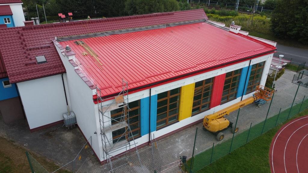 Zadanie będzie składać się z trzech etapów. 10 lipca 2023 r. Gmina Pawłowice podpisała umowę z wykonawcą robót firmą SKID z Pawłowic na realizację I etapu. Polega on na wymianie pokrycia dachowego nad dużą salą gimnastyczną. Nowy dach wykonany został z płyt dachowych warstwowych, a obecnie zabudowywane są obróbki blacharskie. Pozostało jeszcze wymienić rynny oraz przywrócić dach z blachodachówki, który na czas kładzenia płyt został zdemontowany. Koszt wymiany dachu to niespełna 230 tysięcy złotych.W II etapie zostanie zmodernizowana stara, prawie 30-letnia kotłownia gazowa, gmina ogłosiła przetarg, a obecnie trwa procedura wyłonienia wykonawcy robót.W ostatnim, III etapie sala gimnastyczna będzie rozbudowana o magazyn sportowy oraz pomieszczenie centrali wentylacyjno-klimatyzacyjnej. W dwóch salach do gimnastyki zabudowana będzie klimatyzacja z wentylacją mechaniczną, a budynek zostanie dostosowany do przepisów przeciwpożarowych. Gmina złożyła Starostwie Powiatowym w Pszczynie dokumentację, aby uzyskać pozwolenie na prowadzenie w/w prac. Na realizację III etapu gmina stara się pozyskać dofinansowanie z Ministerstwa Edukacji i Nauki.