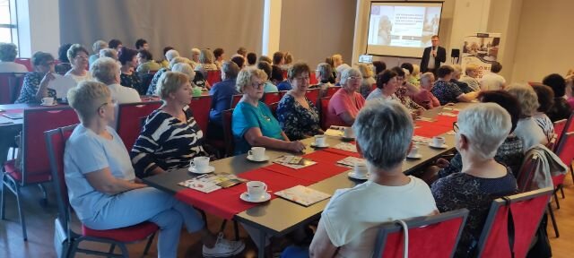 W ramach cotygodniowych zajęć „ Aktywni, Bezpieczni i Zdrowi” w Gminnym Ośrodku Kultury w Pawłowicach odbyło się spotkanie seniorów z prawnikiem Kajetanem Rajskim. Temat spotkania: „Jak skutecznie bronić się przed oszustwami i jak korzystać z praw konsumenckich” miał przybliżyć zgromadzonym w, jaki sposób przeciwdziałać przestępczości wymierzonej w tę grupę wiekową. W zajęciach uczestniczyli seniorzy z Pawłowic, oraz zaproszeni goście z Klubu Seniora w Suszcu, Goczałkowicach oraz z Uniwersytetu Trzeciego Wieku w Pszczynie. Przybyli goście mieli okazję zwiedzić Gminny Ośrodek Kultury, zobaczyć film o 50- letniej historii Gminy Pawłowice oraz wystawę w galerii. Następnie udali się na spacer do parku im. ks. Stanisława Pisarka oraz Inhalatorium.Spotkanie było okazją do wymiany doświadczeń w pracach z seniorami oraz integracji seniorów z powiatu pszczyńskiego.Foto. Danuta Brandys