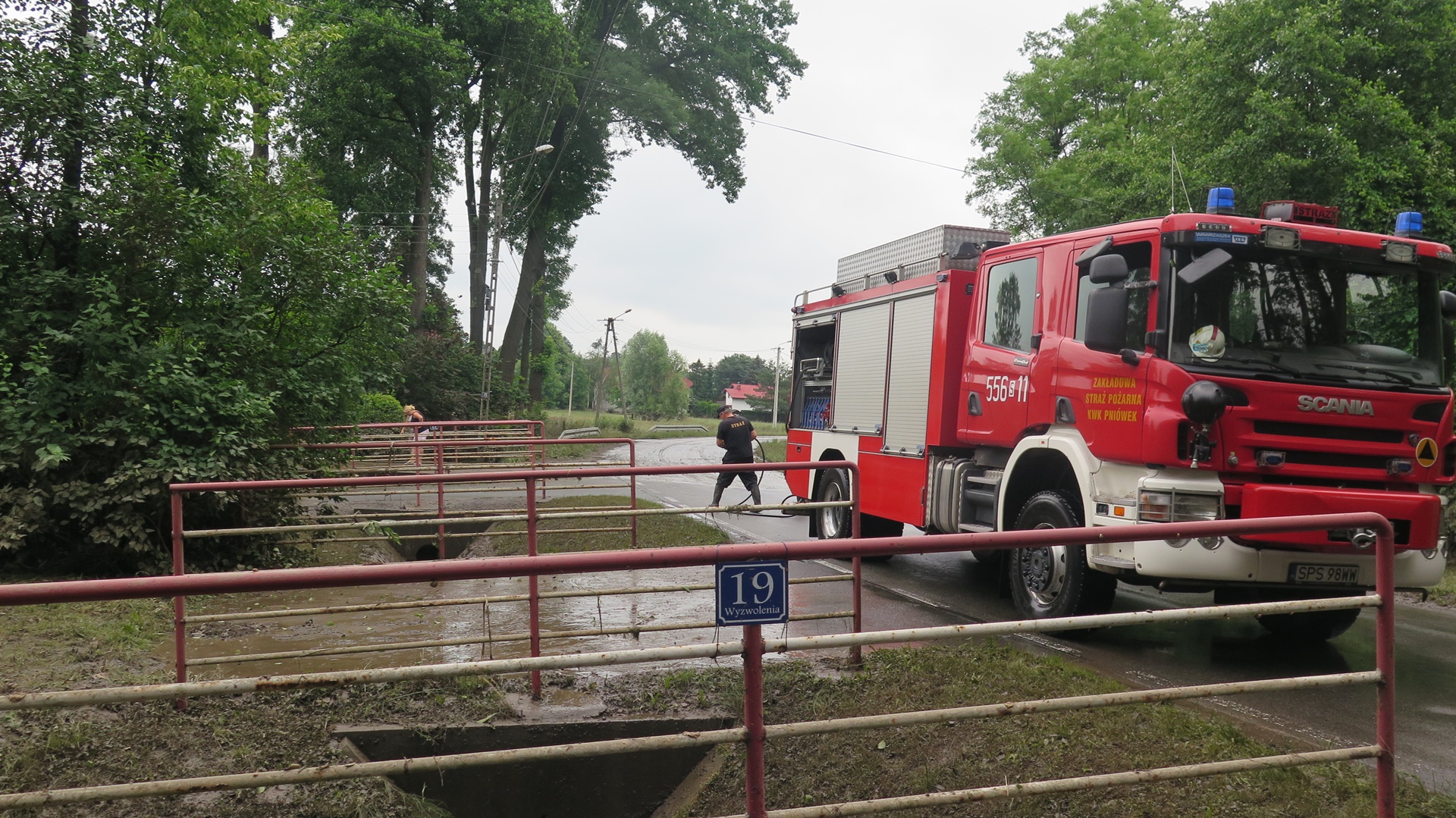 Na ul. Wyzwolenia w Pawłowicach wylała Pawłówka. W akcję z ramienia kopalni zaangażowane było Przedsiębiorstwo Gospodarki Wodnej i Rekultywacji S.A. oraz firma TOLOS prowadząca obecnie prace przy zabezpieczeniu Pawłówki i Zawodowa Straż Pożarna KWK Pniówek. Przy odpompowywaniu z ulicy wody pracowali również strażacy z Państwowej Straży Pożarnej z Pszczyny. Z wodą udało się uporać dopiero w poniedziałek nad ranem, ale ulica musi być jeszcze oczyszczona, zanim zostanie przywrócona do ruchu.