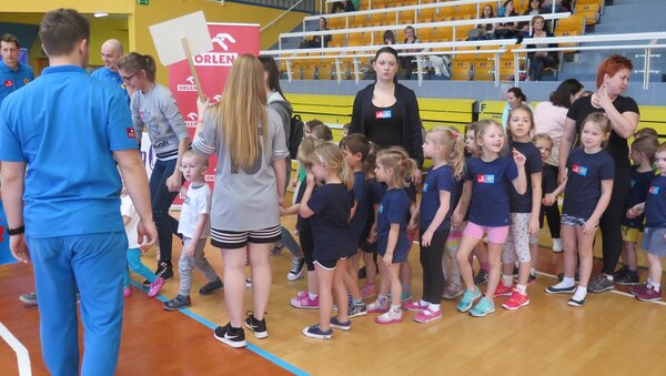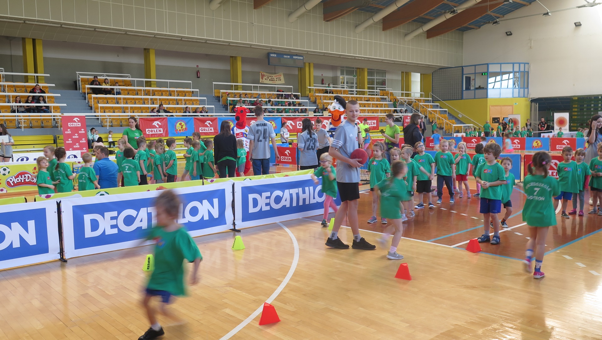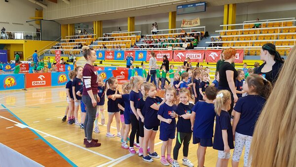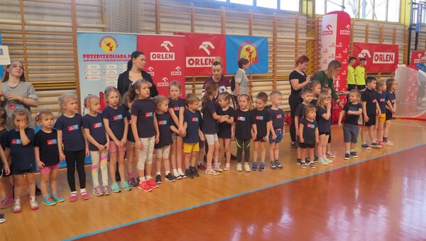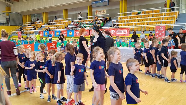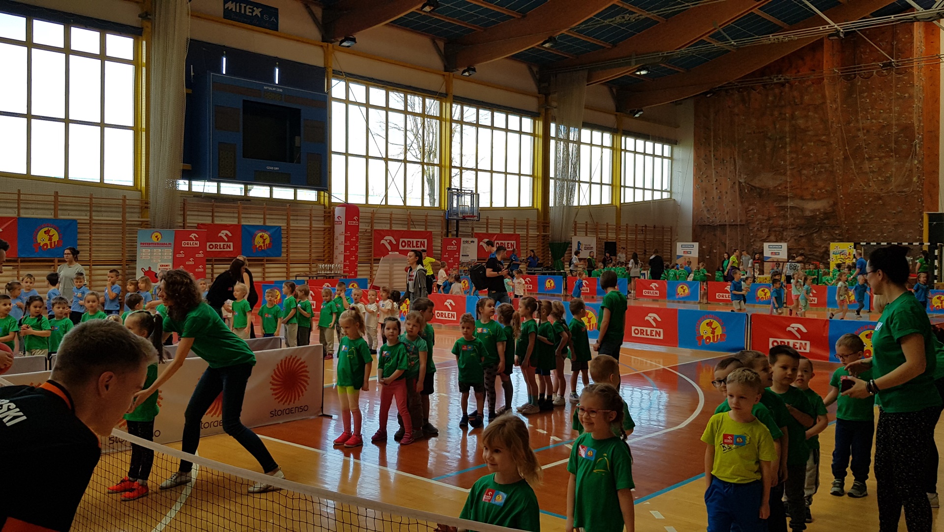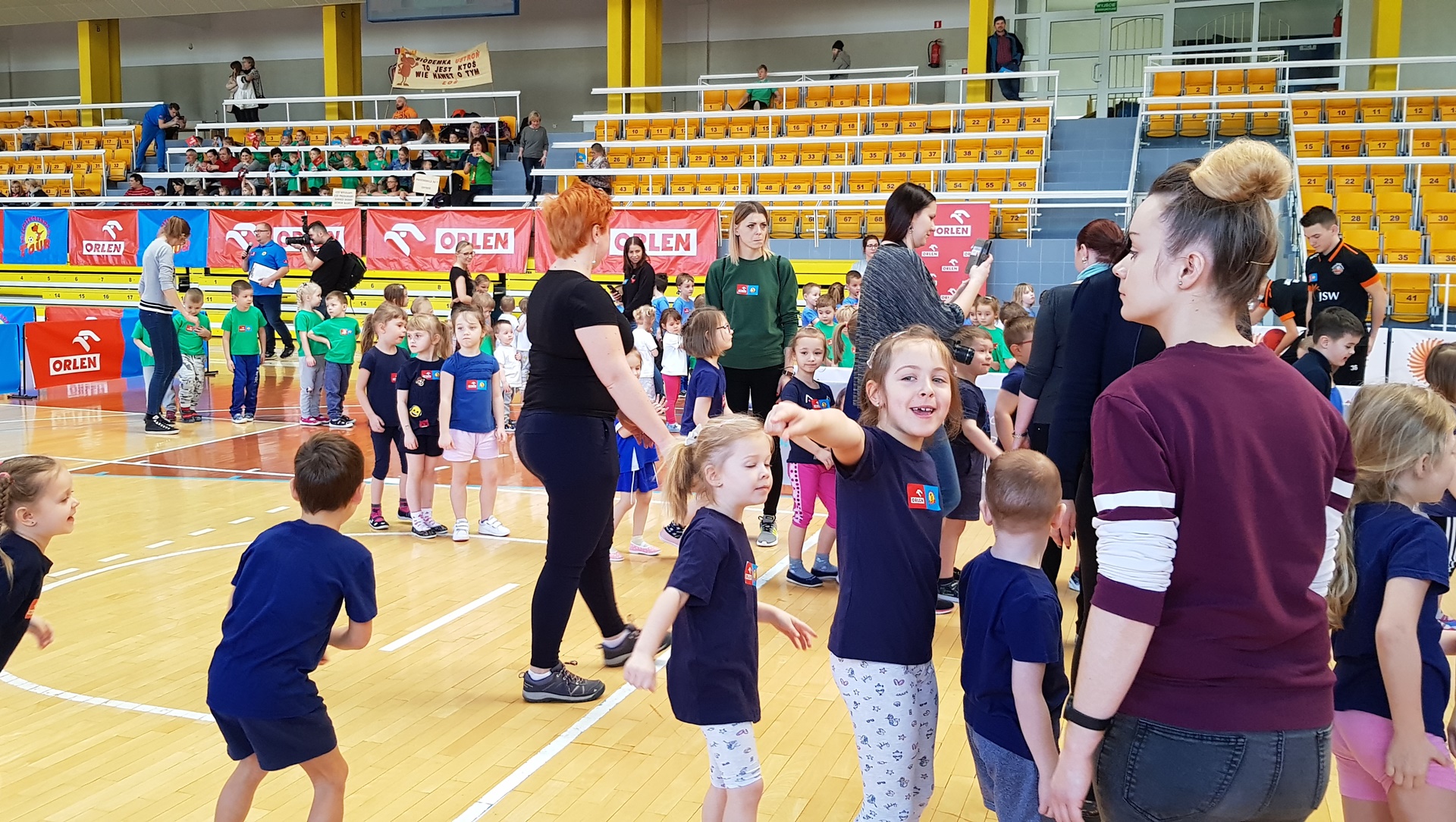 Dzisiaj, 19 marca, w hali Gminnego Ośrodka Sportu w Pawłowicach najmłodsi mieszkańcy gminy Pawłowice oraz okolicznych miejscowości, uczestniczyli w sportowych rozgrywkach ORLEN PRZEDSZKOLIADA TOUR. Z naszej gminy udział w zabawie wzięły dzieci z Niepublicznego Przedszkola „Jaś i Małgosia” z Pawłowic, Niepublicznego Przedszkola „Jaś i Małgosia” z Jarząbkowic oraz dzieci z Zespołu-Szkolno Przedszkolnego z Golasowic. Impreza odbyła się w dwóch turach: o godzinie 8:30 oraz o 11:30, przedszkolaki miały do dyspozycji 7 stacji. Pięć z nich były to stacje sportowe, na których dzieci mogły zagrać w piłkę ręczną, siatkówkę, koszykówkę, piłkę nożną oraz stacje ogólnorozwojową ze slalomem. Dodatkowo była stacja artystyczna i spoczynkowa, na której dzieci otrzymały coś do picia i przekąskę. Maskotką imprezy był Kangurek, który zachęcał do aktywności i dopingował w sportowych wysiłkach. Nad sprawną organizacją imprezy czuwali instruktorzy, prowadzący konkurencje sportowe.
