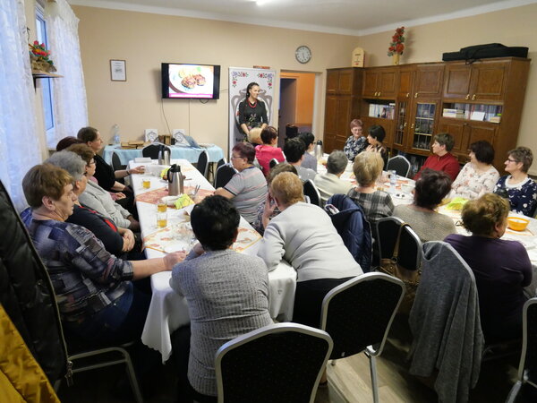 Spotkanie dotyczyło kultywowanych w dzielnicach Jastrzębia-Zdroju tradycji kulinarnych, które autorka opisała w swojej książce. Podczas pierwszej części prelekcji pani Ania skupiła się głównie na szczegółach powstawania publikacji i sposobu gromadzenia informacji, a następnie przy pomocy prezentacji multimedialnej omówiła dania kuchni postnej i wielkanocnej. Po części oficjalnej odbyła się degustacja przygotowanych przez panie z KGW pysznych potraw, czyli krepli, żuru na zakwasie oraz chleba ze smalcem.Filia w Pielgrzymowicach dziękuje Stowarzyszeniu KGW za serdeczne przyjęcie w swoich progach oraz zaprasza do obejrzenia wystawy przygotowanej przez autorkę „Tradycyjne śląskie potrawy na fotografii”, która przez cały marzec będzie dostępna w bibliotece.Fot. Marcin Wójcik