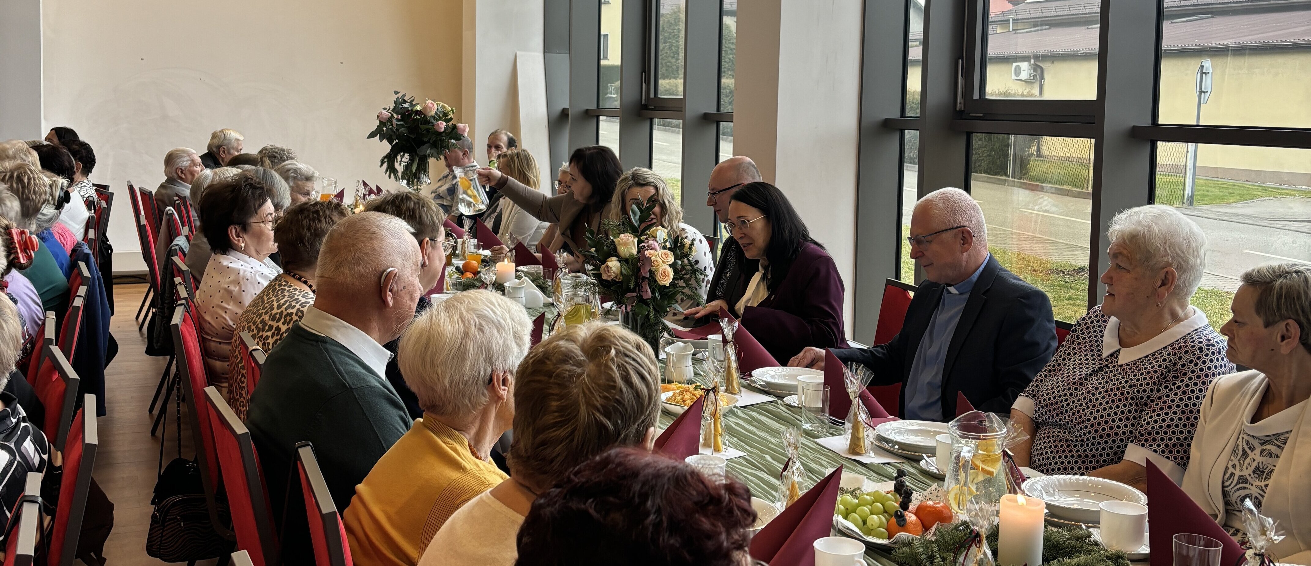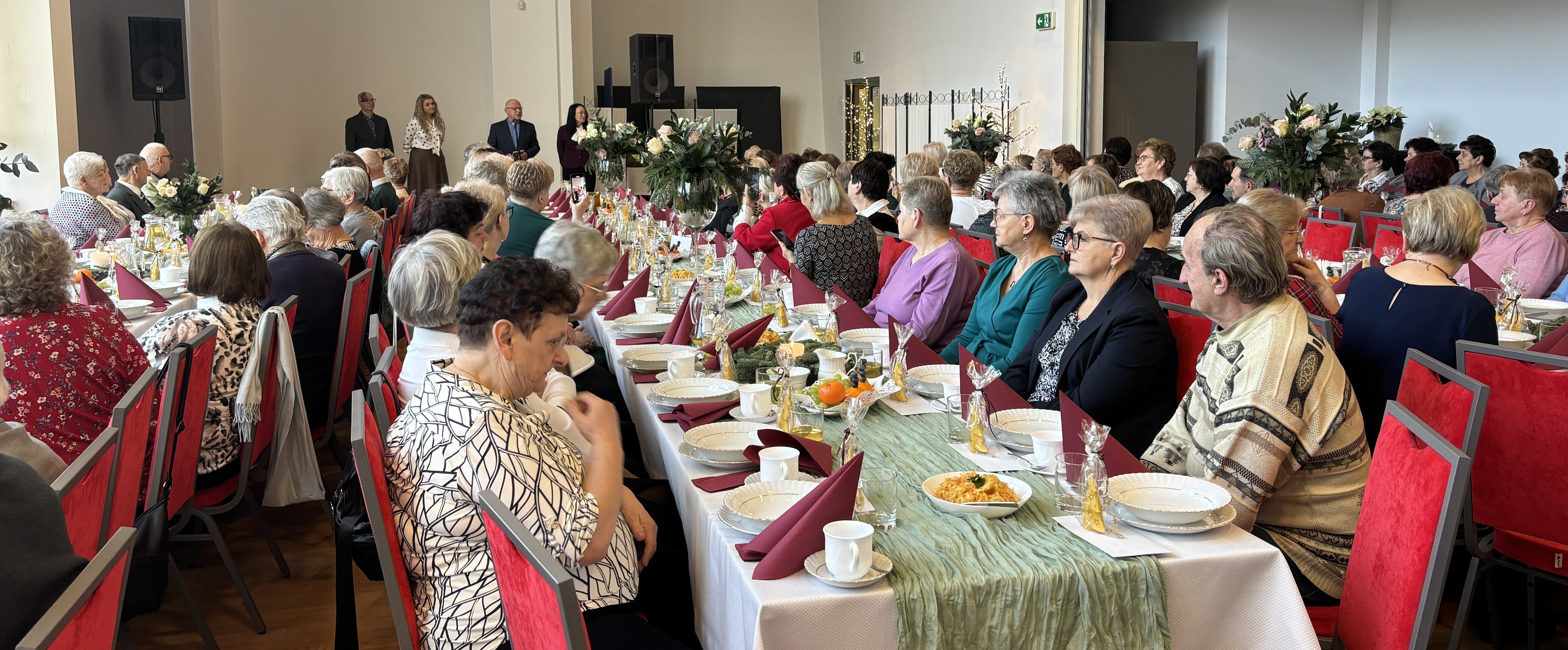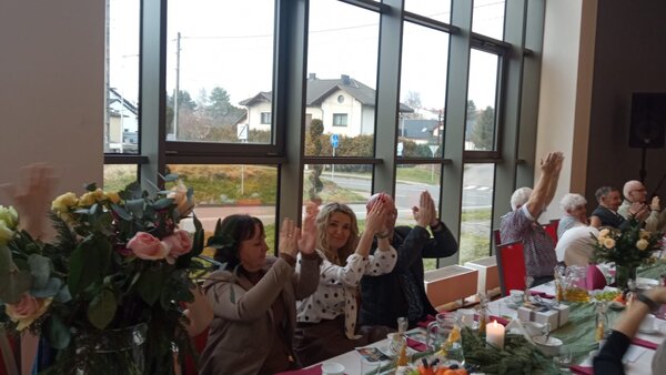 Wydarzenie było okazją do wspólnego spędzenia czasu w serdecznej, świątecznej atmosferze. Nie zabrakło rozmów, uśmiechów, ciepłych gestów i wzajemnych życzeń. Wspólne słuchanie kolęd wprowadziły uczestników w klimat zbliżających się Świąt Bożego Narodzenia. Dodatkową atrakcją spotkania był występ Tomasza Białka z Teatru Castello z Mosznej, który dostarczył uczestnikom wielu pozytywnych emocji.