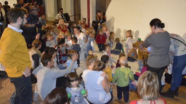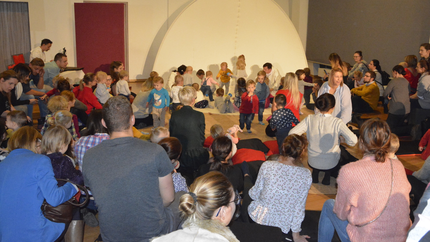 W piątek, 30 listopada 2018 r. o godz. 17:00, w Centrum Kultury w Pawłowicach, dzieci w wieku od 1 do 3 lat, zostały wprowadzone w świat teatru za sprawą spektaklu pt. „Bam Bam”, czyli podusiowego teatrzyku dla najmłodszych. Był to spektakl oparty na prostych środkach wyrazu: naturalnych kolorach, formach i dźwiękach. Dodatkowo miał on na celu oddziaływać sensorycznie i zawierał elementy dydaktyczne jak sekwencje, podstawowe kolory i liczebniki od 1 do 4. Na zakończenie aktorzy zaprosili wszystkie maluchy do wspólnej zabawy piłkami oraz niezwykłymi instrumentami muzycznymi. Spontaniczne reakcje dzieci były wspaniałe! Dzieci śmiały się, powtarzały za aktorami słowa „bam bam” i żywo reagowały na to, co dzieje się na scenie. Kolejne spotkanie z teatrem dla maluchów zaplanowano na marzec 2019 r. Zapraszamy! Foto: GOK Pawłowice.