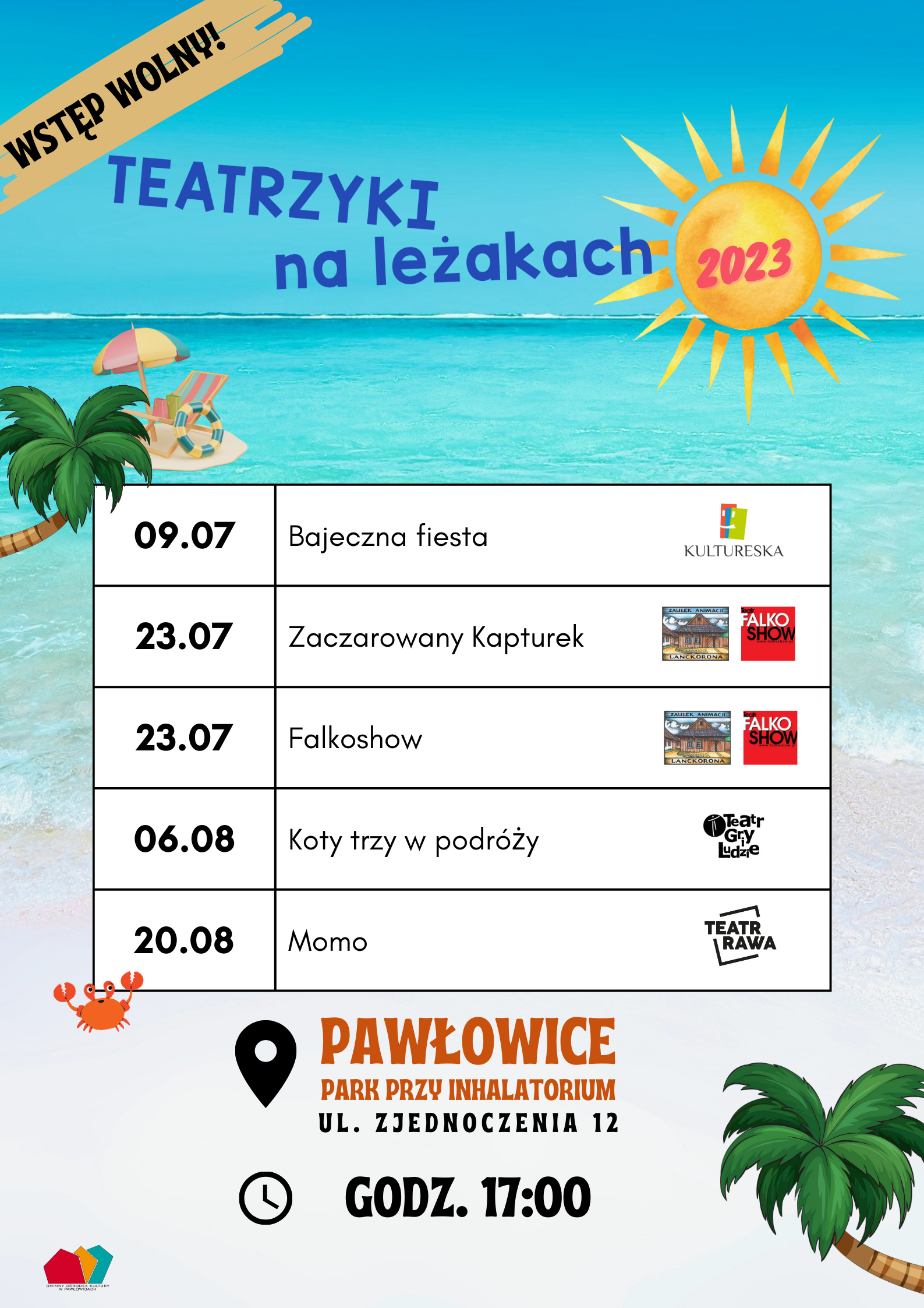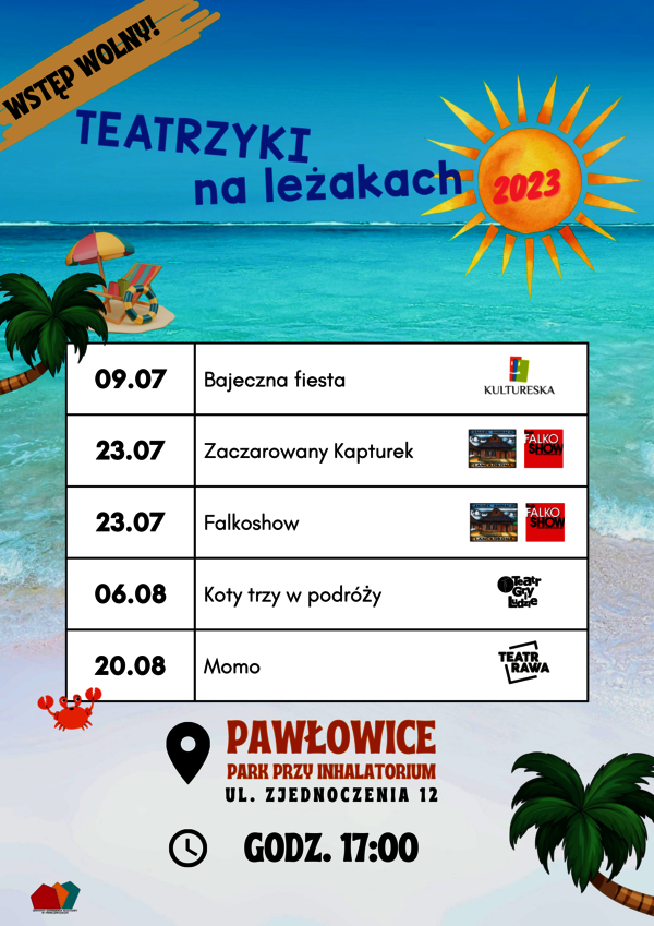 Zapraszamy na letni cykl dla dzieci „Teatrzyki na leżakach”, podczas których będzie można wygodnie rozsiąść się w leżakach i oglądać spektakle! Tym razem mamy dla Was aż dwa spektakle!
