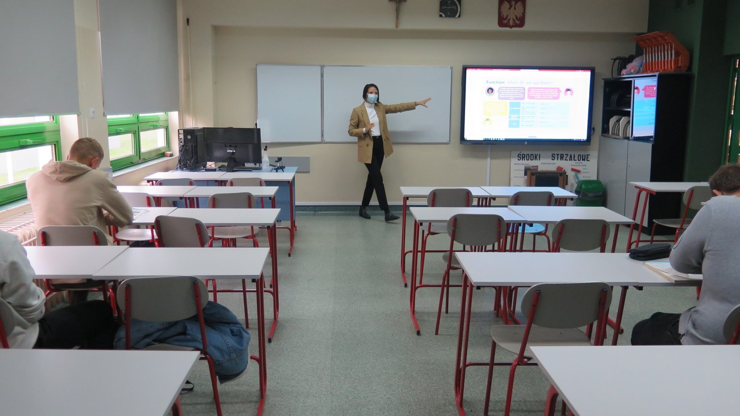 Przypomnijmy, że w ZSO funkcjonują liceum, technikum i szkoła branżowa I stopnia. To duża placówka, w której uczy się prawie 600 osób. Nauczanie hybrydowe powoduje, że w szkole w tym samym czasie przebywa znacznie mniej osób, jednak nie wszystkie klasy objęte są tym systemem nauczania. Zrezygnowano z niego w niezbyt licznych klasach maturalnych i w klasach pierwszych, których uczniowie dopiero rozpoczynają przygodę z nauką na szczeblu ponadpodstawowym i potrzebują czasu na zaaklimatyzowanie się w nowej społeczności oraz nowym systemie nauki.