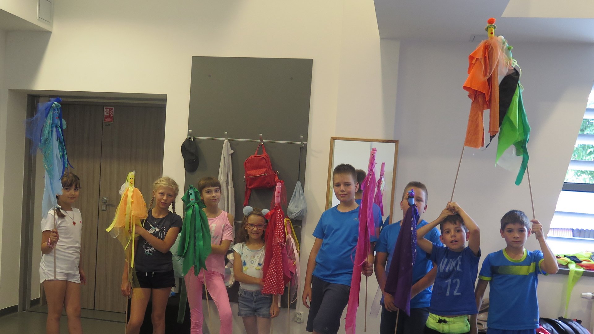 Rozpoczęły się półkolonie w Gminnym Ośrodku Kultury. Pierwszy dzień poświęcony był zabawie w teatr. Uczestnicy trenowali dykcję, śpiew i pracę z ciałem, a na zakończenie występowali w sali widowiskowej na dużej scenie. Instruktorka Ewa Sikora opowiadała historię do akompaniamentu Moniki Kurowskiej, a dzieci - wykorzystując rekwizyty, wykonane przez siebie kukiełki i ruch sceniczny pokazywały improwizowany spektakl na scenie.