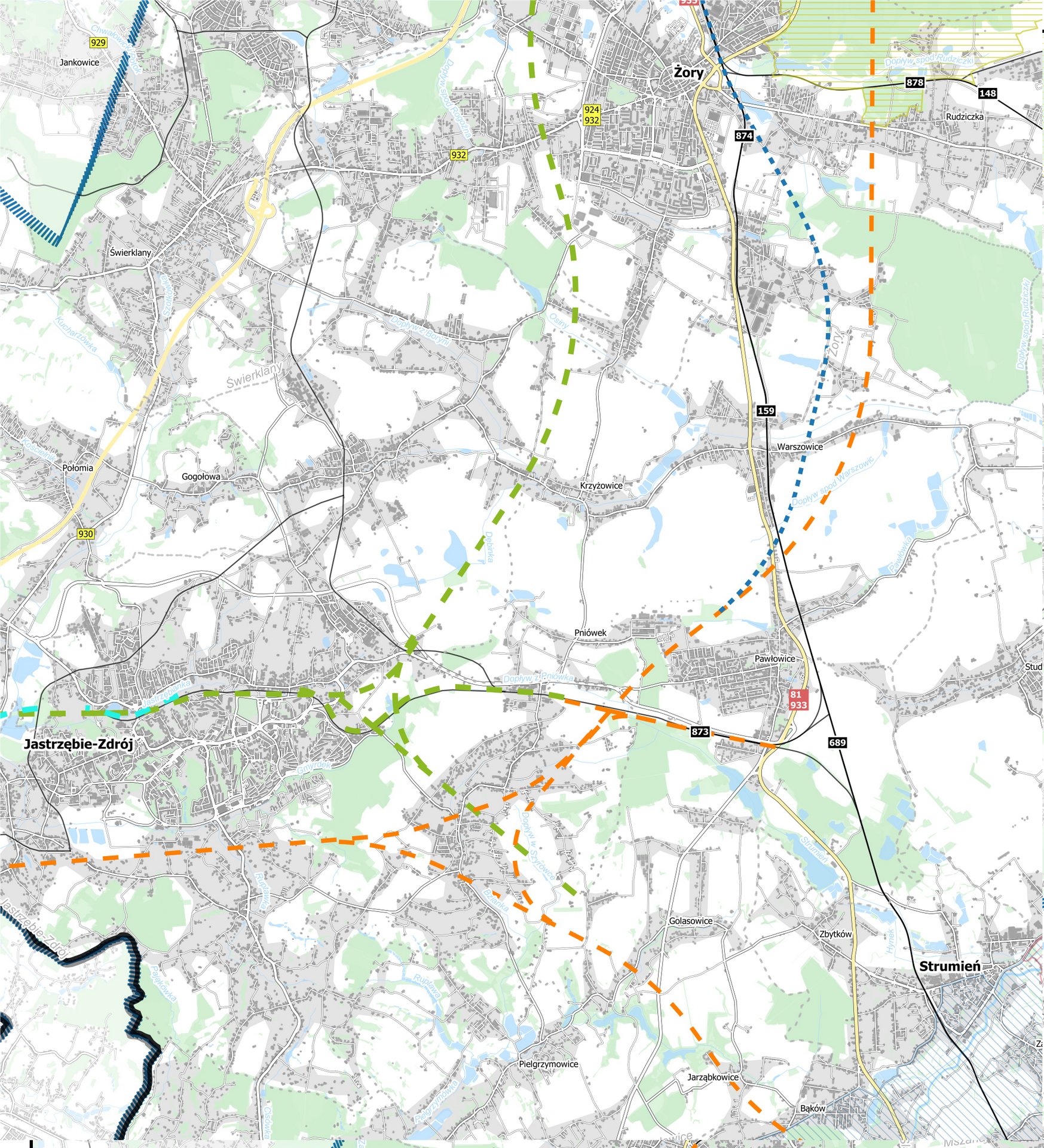 Również gmina Pawłowice przygotowała opinię dotyczącą planowanych tras i wnioskowała, aby zmodernizowane linie przede wszystkim wykorzystywały już istniejące, dotychczasowe ślady tras kolejowych.