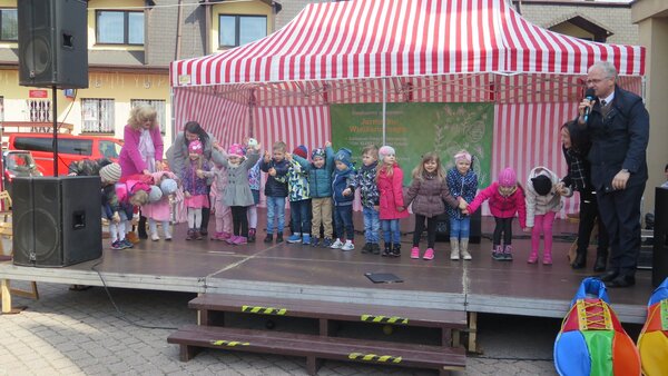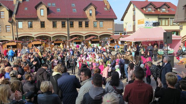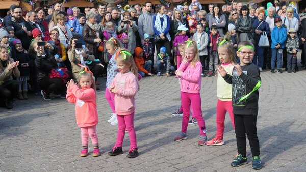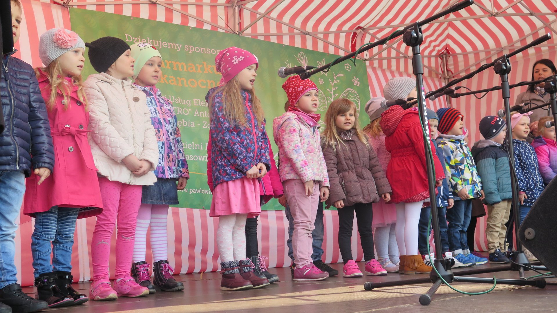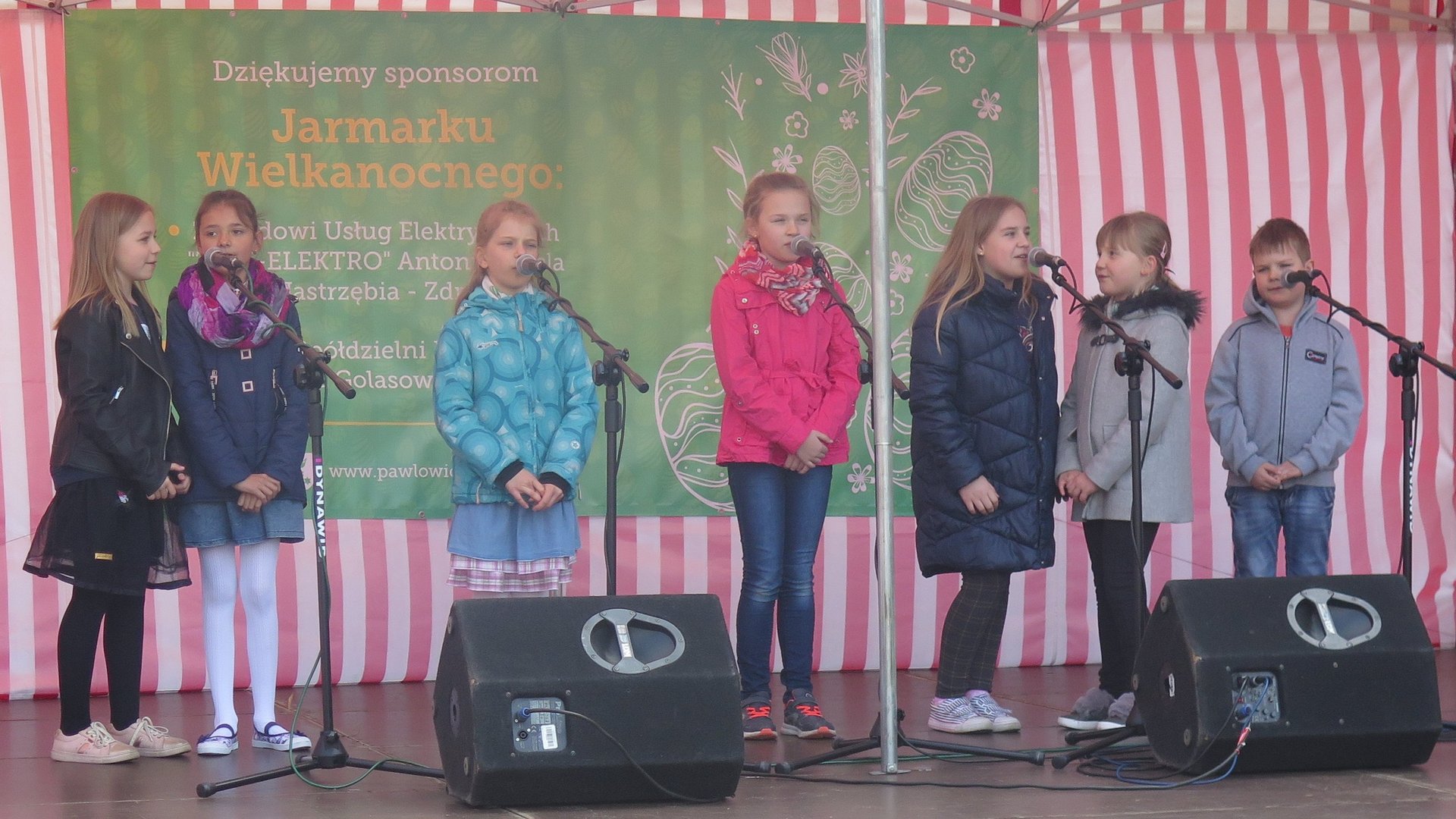 Najwięcej atrakcji przygotowano z myślą o dzieciach. Najmłodsi goście jarmarku malowali gigantyczną drewnianą pisankę, która ozdabia rynek, tańczyli w rytm kowbojskiej muzyki i grali w kółko-krzyżyk, ale zamiast geometrycznych figur używali pisanek i kurczaczków. Na warsztatach plastycznych, za pomocą sznurka i kilku dodatków, można było z wydmuszki wyczarować zajączka. Na scenie pojawiły się dzieci z grupy wokalnej Fantazja i Dziecięcego Zespołu Regionalnego „Pawłowice” oraz przedszkolaki z „Modrzewiowego Ogrodu”. Śpiewali też dorośli – chór VIOLA z Golasowic, a grała orkiestra dęta KWK „Pniówek”. Spotkanie otworzył wójt Franciszek Dziendziel, który razem z przewodniczącym rady gminy Andrzejem Szawłem oraz ks. Eugeniuszem Paruzelem z Pawłowic i ks. Damianem Krosnym z Warszowic złożyli wszystkim zebranym świąteczne życzenia. Wójt podziękował również wszystkim, którzy włączyli się w przygotowanie jarmarku, a szczególnie sponsorom tegorocznej edycji: Rolniczej Spółdzielni Produkcyjnej "Przyjaźń" z Golasowic, firmie Tom-Elektro oraz państwu Lazarom z Pielgrzymowic, którzy wykonali czterometrową palmę ozdabiająca budynek urzędu oraz Szkole Podstawowej nr 2, która pomogła w przygotowaniu żurku. Laureaci konkursu zorganizowanego przez Gminny Ośrodek Kultury „Wielkanocne Jajo” otrzymali nagrody z rąk wójta i dyrektora GOK Mariusza Grygiera. W kategorii przedszkoli pierwsze miejsce zajęła Paulina Rokita, w kategorii szkół podstawowych – Łukasz Nogły, w kategorii młodzieży – Paulina Kaul, a wśród dorosłych - Jolanta Kołodziejczyk. Na zakończenie, przy dużym aplauzie publiczności, wystąpiły grupy taneczne skupione w Klubie Tańca „i”.
