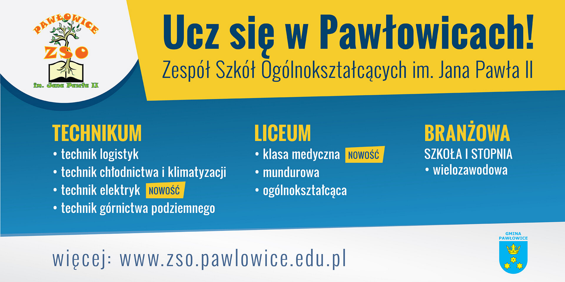 Ciekawą i szeroką ofertę dla tegorocznych absolwentów gimnazjów przygotował Zespół Szkół Ogólnokształcących im. Jana Pawła II w Pawłowicach. Szkoła dynamicznie się rozwija i w tym roku poszerza swoją ofertę o nowy kierunek kształcenia - technik elektryk. Nowością jest również utworzenie klasy medycznej w liceum ogólnokształcącym.