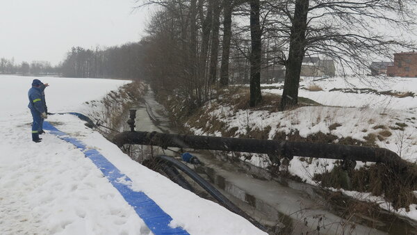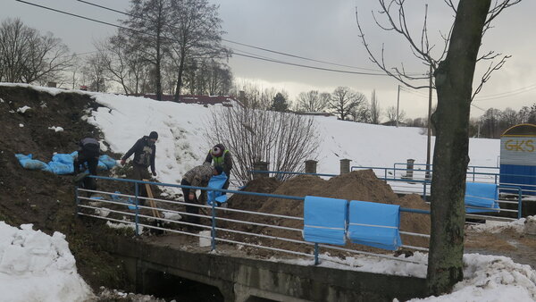 W związku z trwającą od soboty odwilżą, poziom wody w potoku Pawłówka, na odcinku szkód górniczych, niebezpiecznie się podniósł do wysokości wałów. Sytuacje dodatkowo utrudnia przeciągająca się przebudowa przepustu w ciągu ul. Wyzwolenia, realizowana przez Powiatowy Zarząd Dróg w Pszczynie. W pierwszej kolejności konieczne było zlikwidowanie tymczasowego wału ziemnego zatrzymującego przepływ wody w Pawłówce, który powstał, aby umożliwić prace związane z podwyższeniem wspomnianego wyżej przepustu. Na przekroczenie alarmowego stanu wód zareagowało Przedsiębiorstwo Gospodarki Wodnej i Rekultywacji, które zamontowało dwie pompy, w celu obniżenia poziomu wody w Pałwówce. Są one w stanie przepompować 3050 m3 wody na godzinę, dzięki czemu zagrożenie rozlania się wód lub uszkodzenia wałów zostało oddalone, a poziom wody obniżony. Sytuacja była na tyle groźna, że część zewnętrzna skorupy wału, od strony ul. Wyzwolenia została uszkodzona. Interwencji podjęła się kopalnia KWK Pniówek, odpowiedzialna za powstawanie w tym miejscu szkód górniczych i osiadanie terenu. Na jej prośbę pracownicy przedsiębiorstwa „SOTM Sp. z o.o.” zabezpieczyli workami z piaskiem uszkodzony wał. Sytuacja na bieżąco monitorowana była przez wójta gminy Pawłowice oraz pracowników Referatu Ochrony Środowiska i Rolnictwa Urzędu Gminy Pawłowice. W chwili obecnej poziom wód nie zagraża przelaniem.