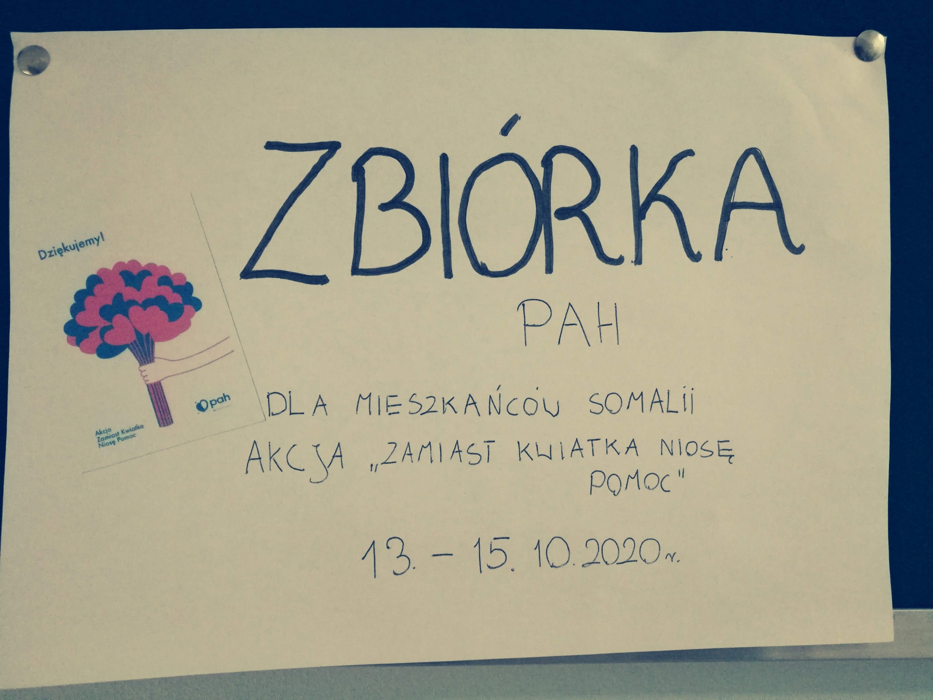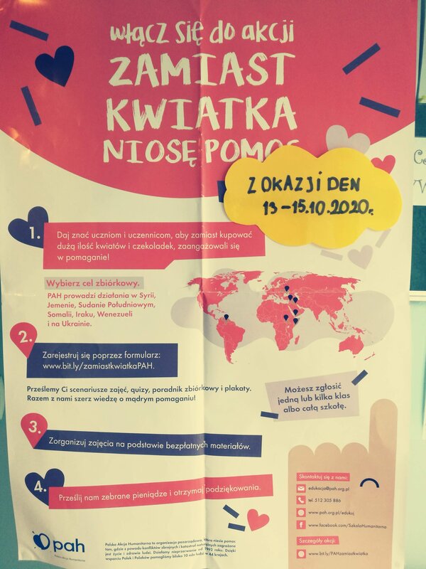 Nie od dziś wiadomo, że społeczność Zespołu Szkolno-Przedszkolnego w Golasowicach potrafi solidaryzować się z osobami potrzebującymi pomocy i wsparcia. Dzień Edukacji Narodowej był okazją do podziękowań w nieco inny sposób - poprzez zaangażowanie się w pomoc humanitarną przy realizacji akcji „Zamiast kwiatka niosę pomoc”. Uczniowie z Golasowic zrezygnowali z zakupu dużej ilości kwiatów z okazji Dnia Nauczyciela i podziękowali swoim pedagogom za wspólną pracę, niosąc realną pomoc potrzebującym mieszkańcom Somalii. Zorganizowana w szkole zbiórka pieniędzy na szlachetny cel wsparła działania Polskiej Akcji Humanitarnej w północno-wschodniej części Afryki. Była to doskonała możliwość do edukowania młodzieży z zakresu pomocy humanitarnej.